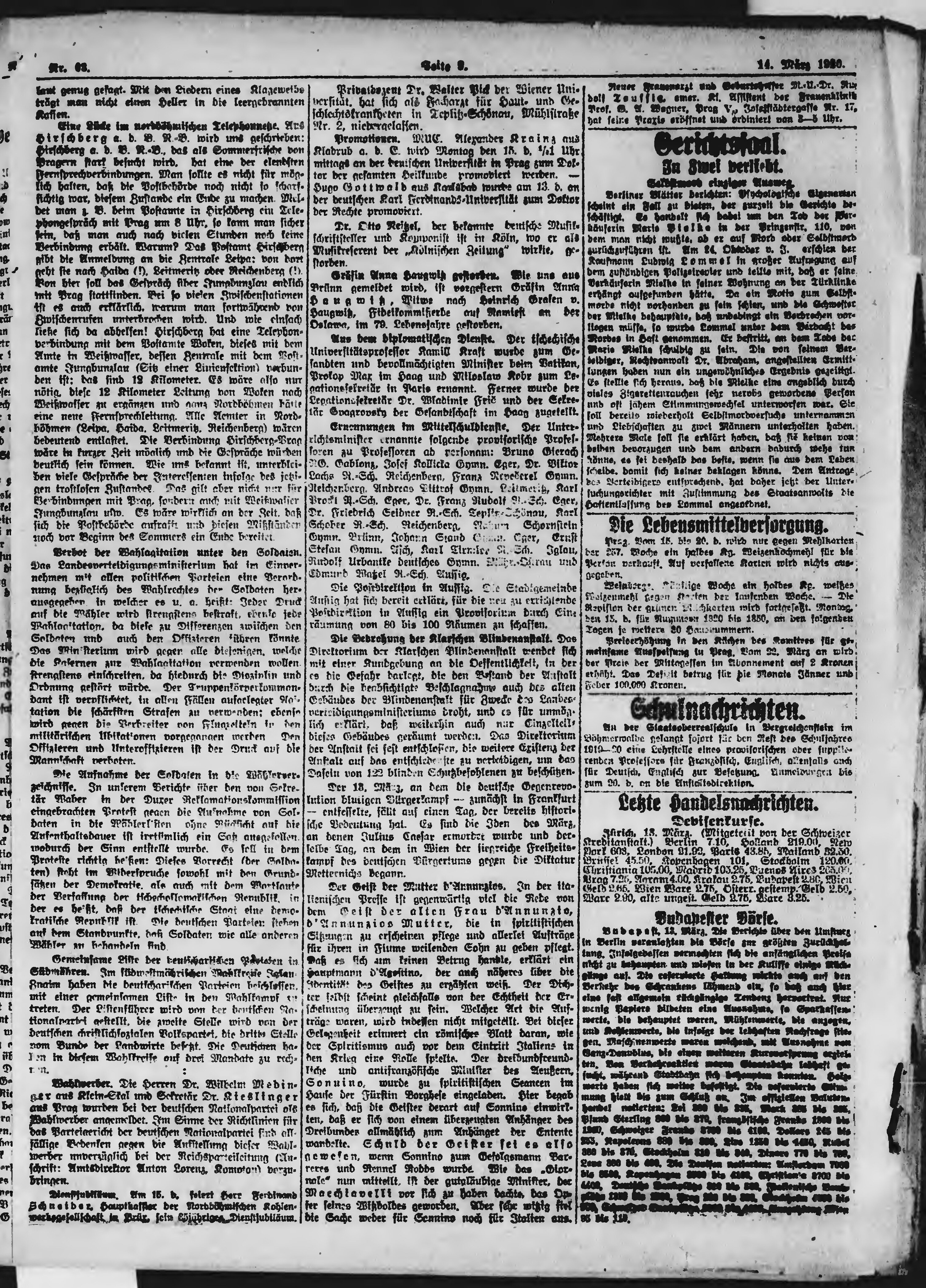 * Datum vydání výtisku: 14.3.1920 Číslo výtisku: 63 Poznámky k výtisku: ranní vydání;