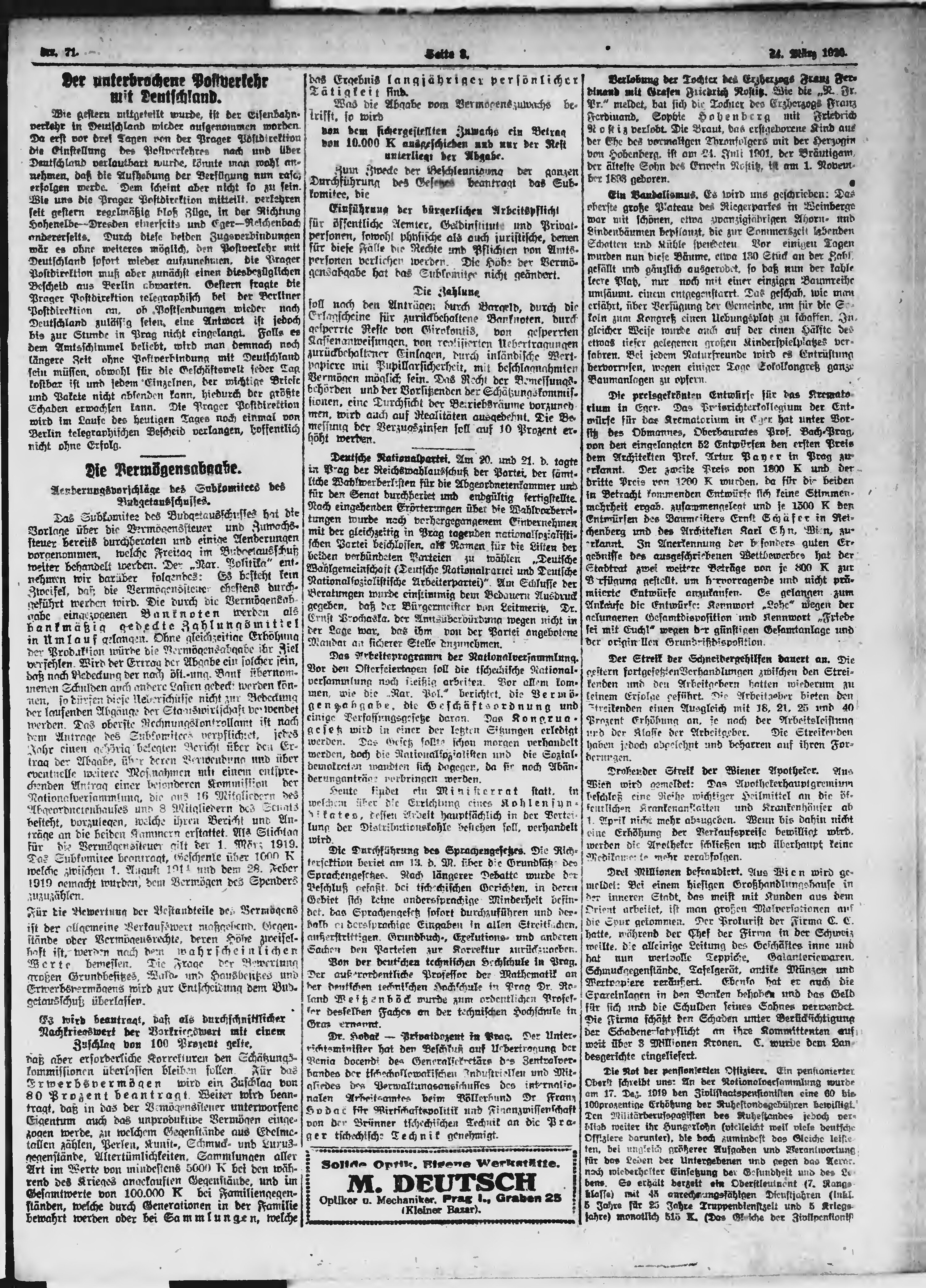 * Datum vydání výtisku: 24.3.1920 Číslo výtisku: 71 Poznámky k výtisku: večerní vydání;