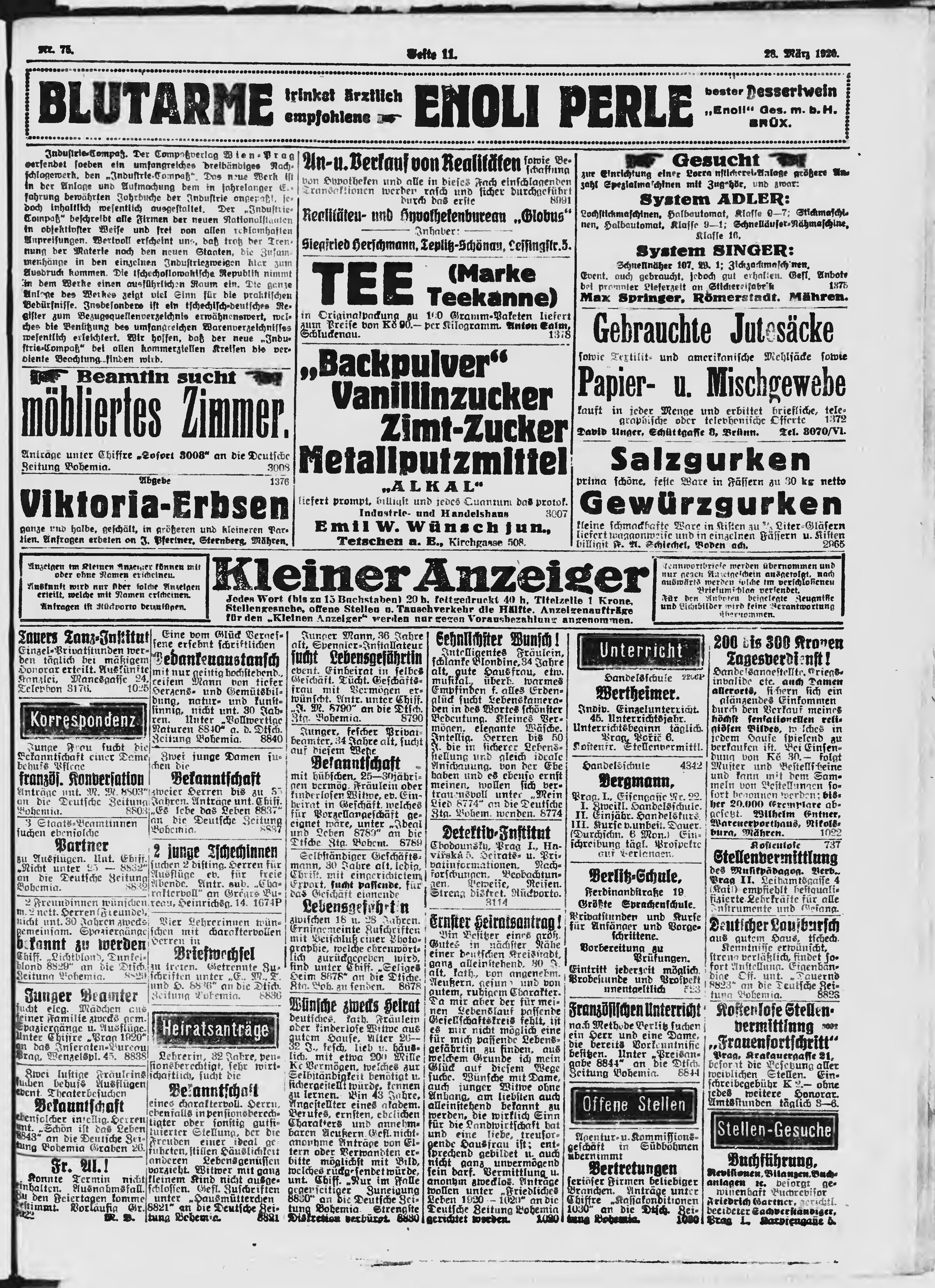 * Datum vydání výtisku: 28.3.1920 Číslo výtisku: 75 Poznámky k výtisku: ranní vydání;