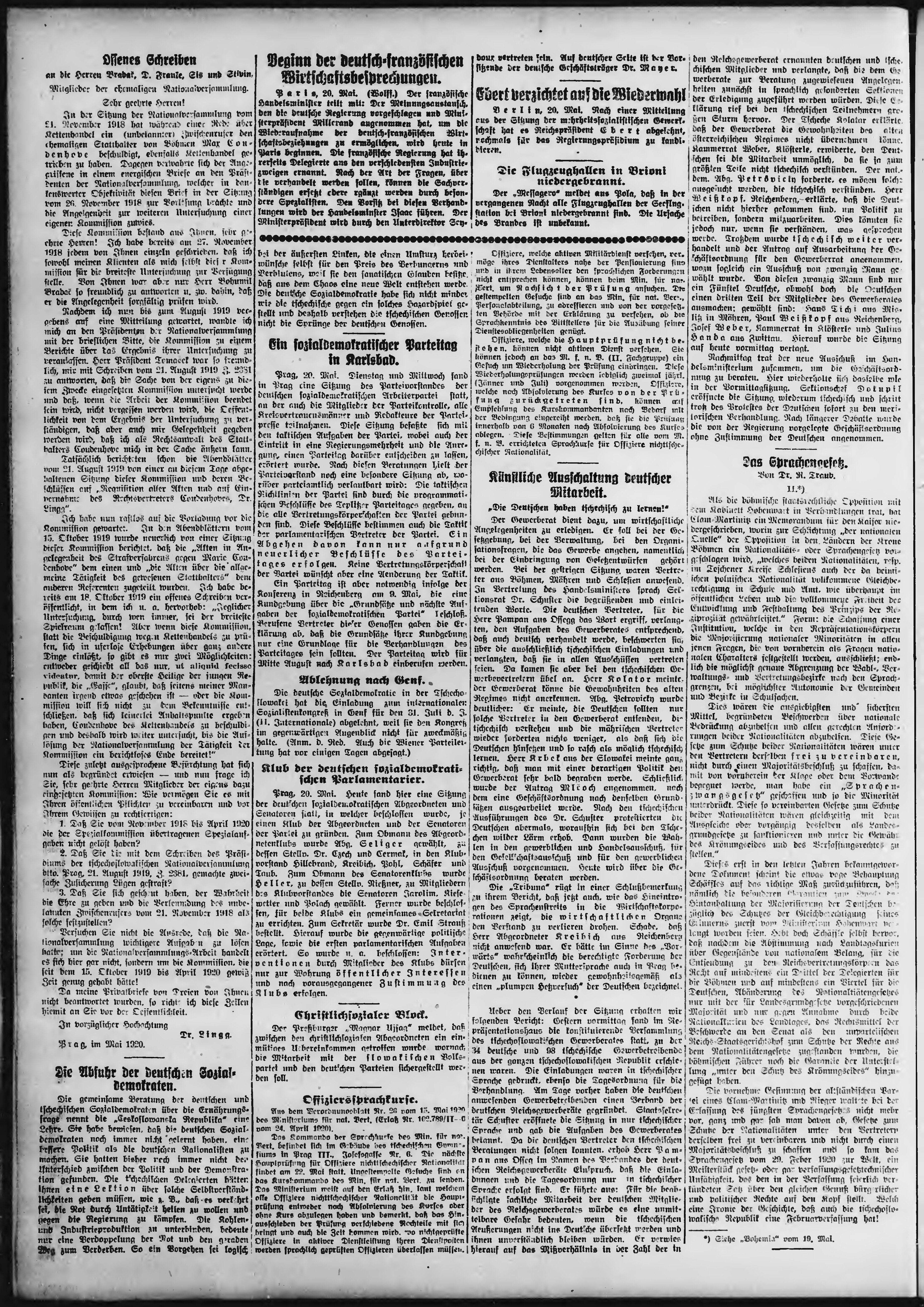 * Datum vydání výtisku: 21.5.1920 Číslo výtisku: 119 Poznámky k výtisku: ranní vydání;