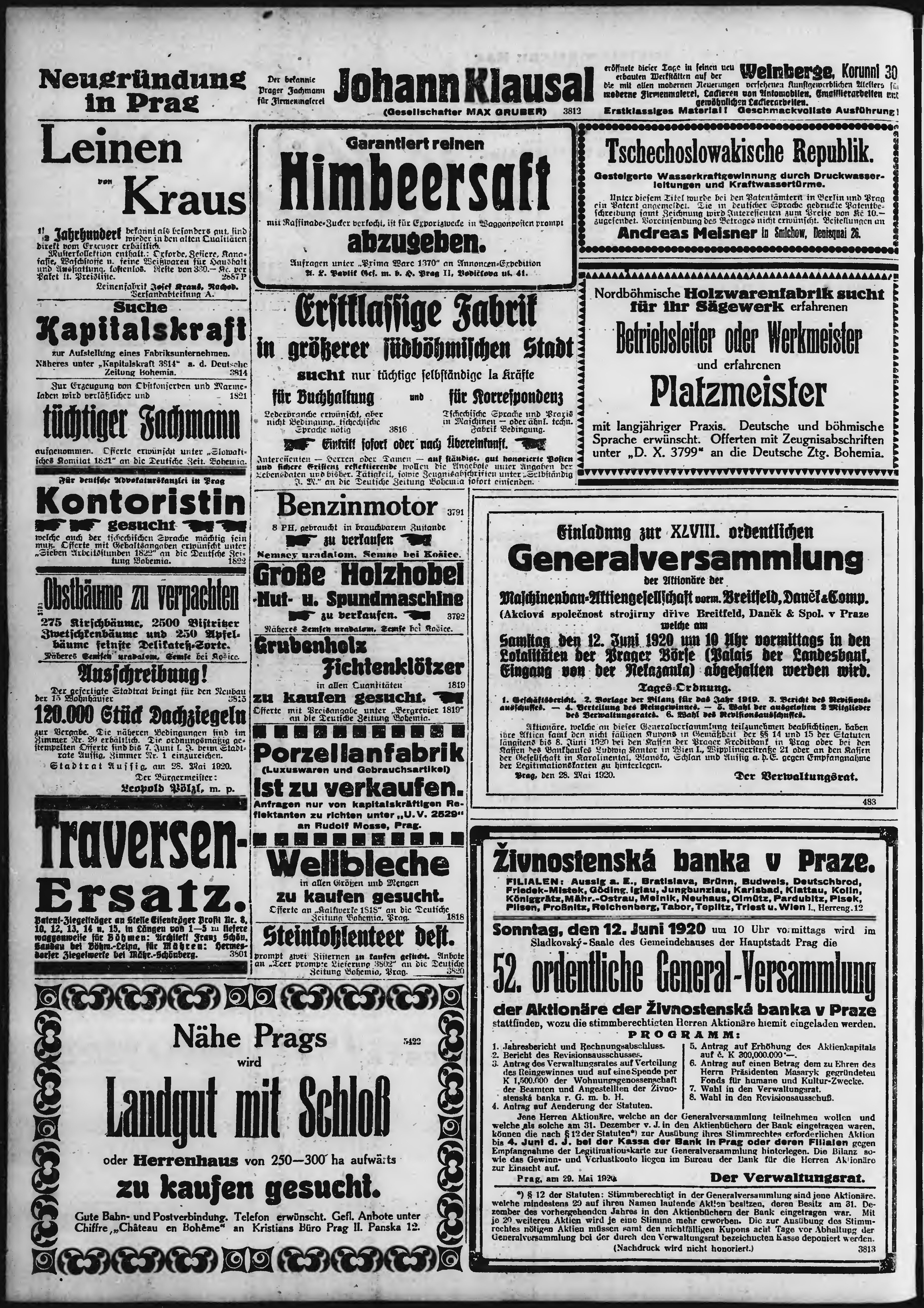 * Datum vydání výtisku: 30.5.1920 Číslo výtisku: 126 Poznámky k výtisku: ranní vydání;