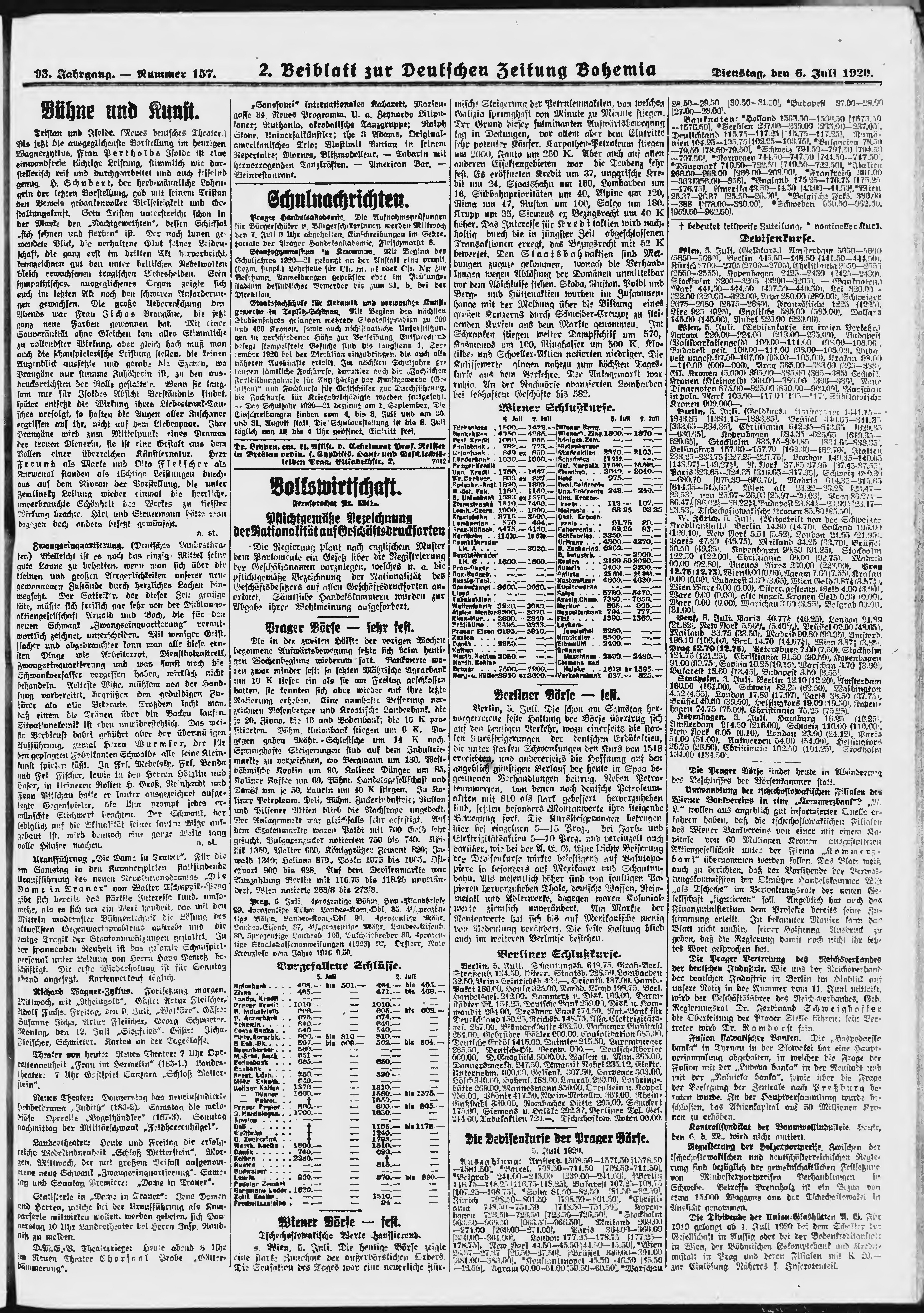 * Datum vydání výtisku: 6.7.1920 Číslo výtisku: 157 Poznámky k výtisku: ranní vydání;