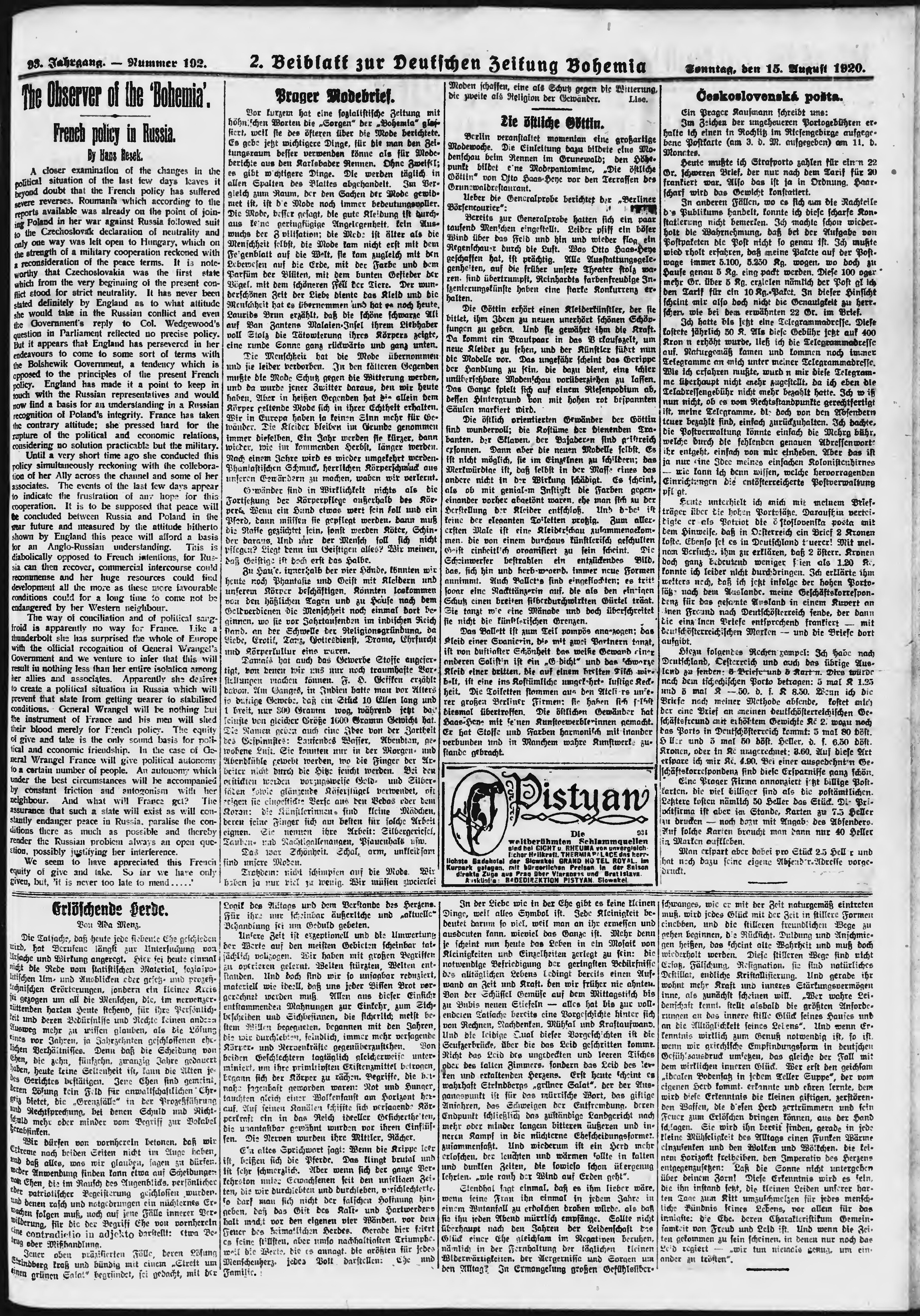 * Datum vydání výtisku: 15.8.1920 Číslo výtisku: 192 Poznámky k výtisku: ranní vydání;