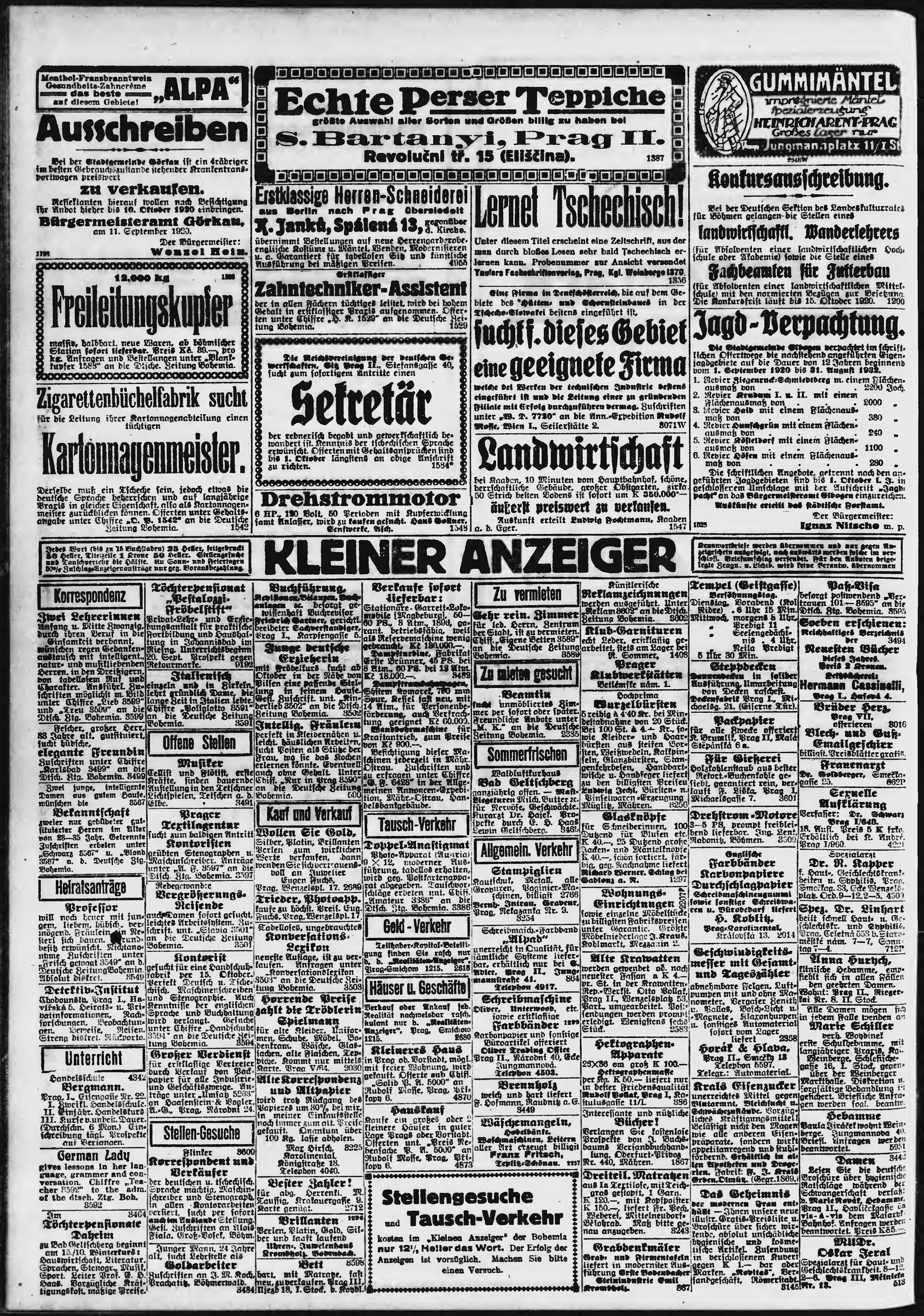 * Datum vydání výtisku: 21.9.1920 Číslo výtisku: 223 Poznámky k výtisku: ranní vydání;