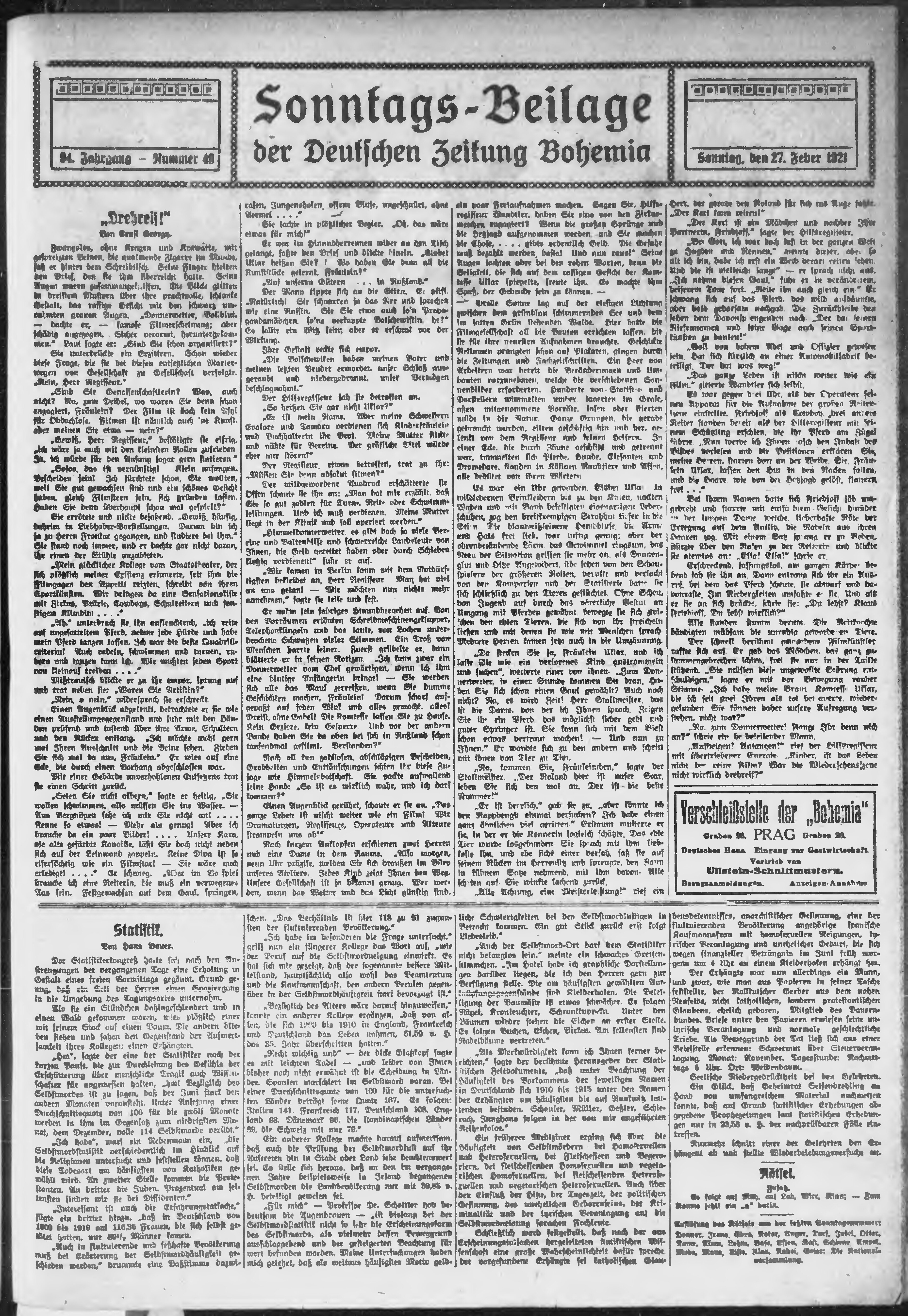 * Datum vydání výtisku: 27.2.1921 Číslo výtisku: 49 Typ výtisku: příloha