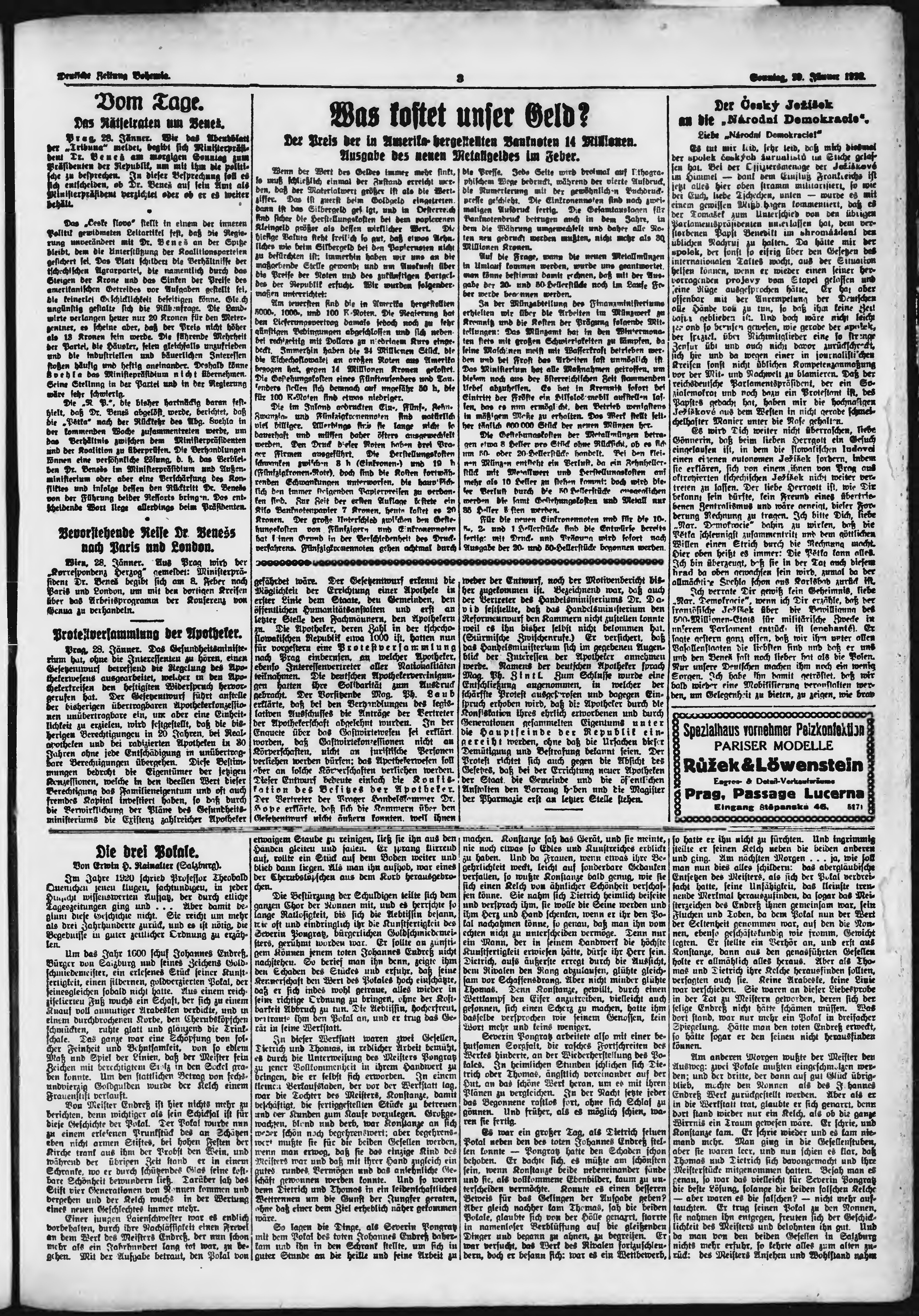 * Datum vydání výtisku: 29.1.1922 Číslo výtisku: 25 Poznámky k výtisku: ranní vydání;