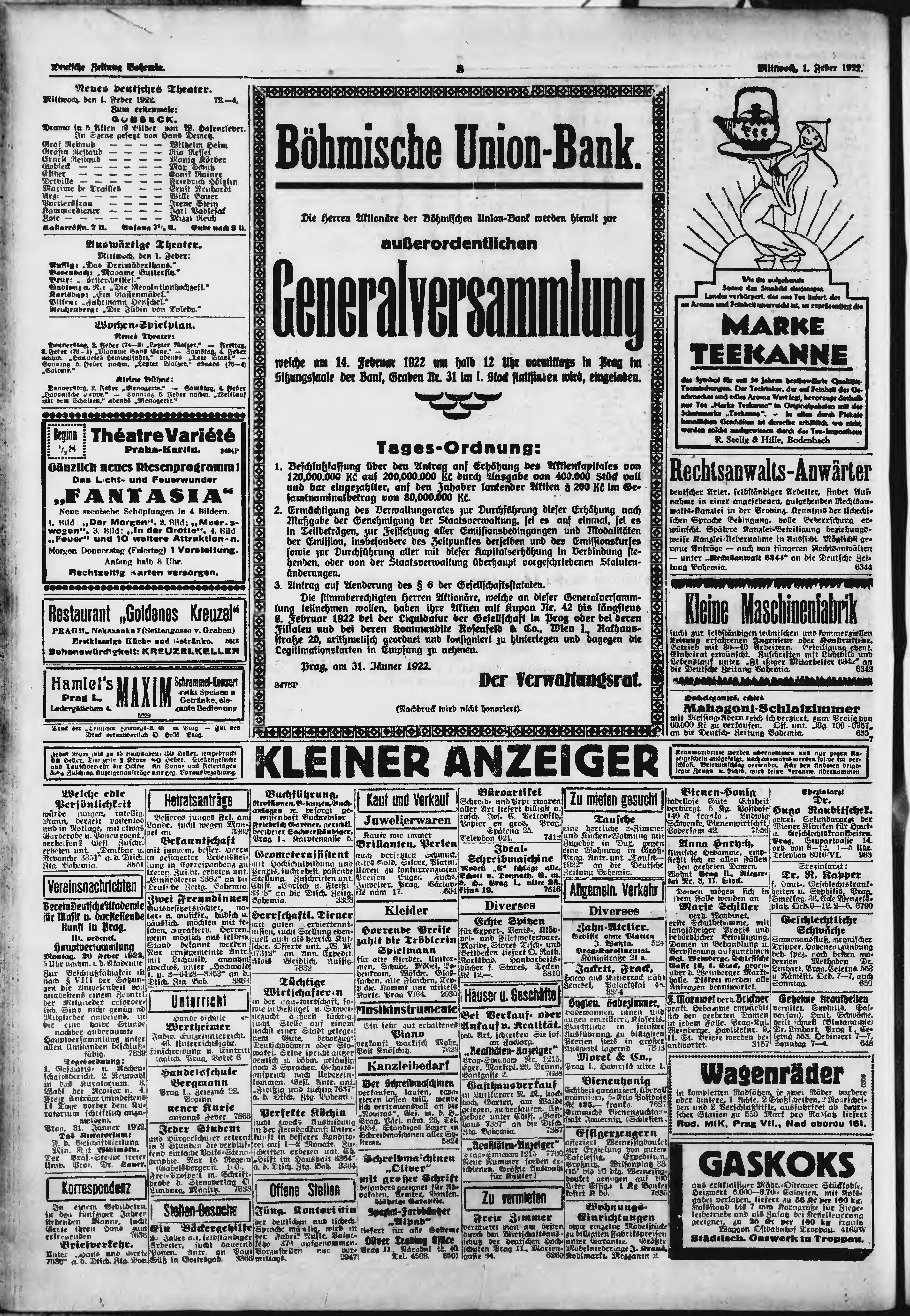 * Datum vydání výtisku: 1.2.1922 Číslo výtisku: 27 Poznámky k výtisku: ranní vydání;