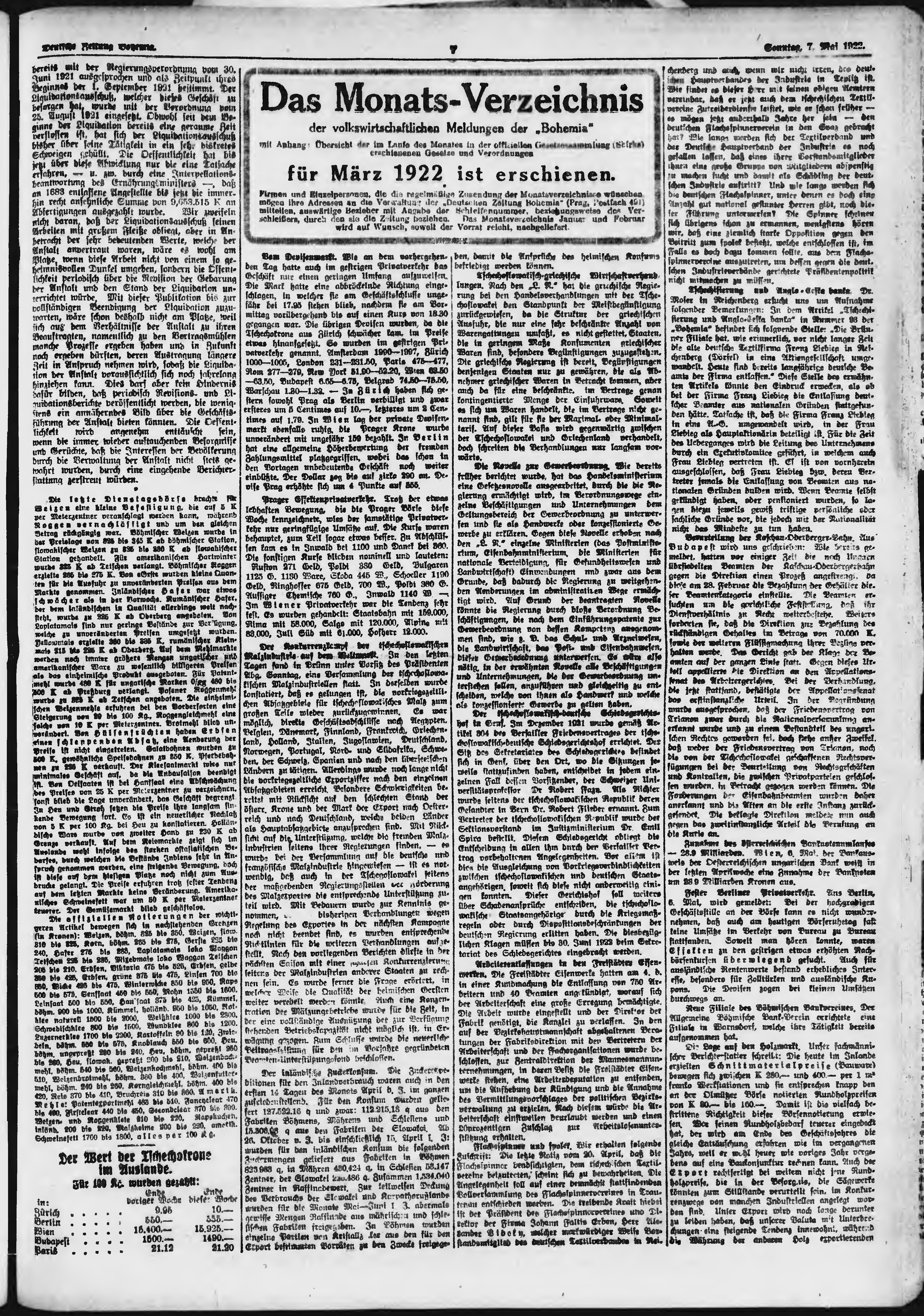 * Datum vydání výtisku: 7.5.1922 Číslo výtisku: 106 Poznámky k výtisku: ranní vydání;