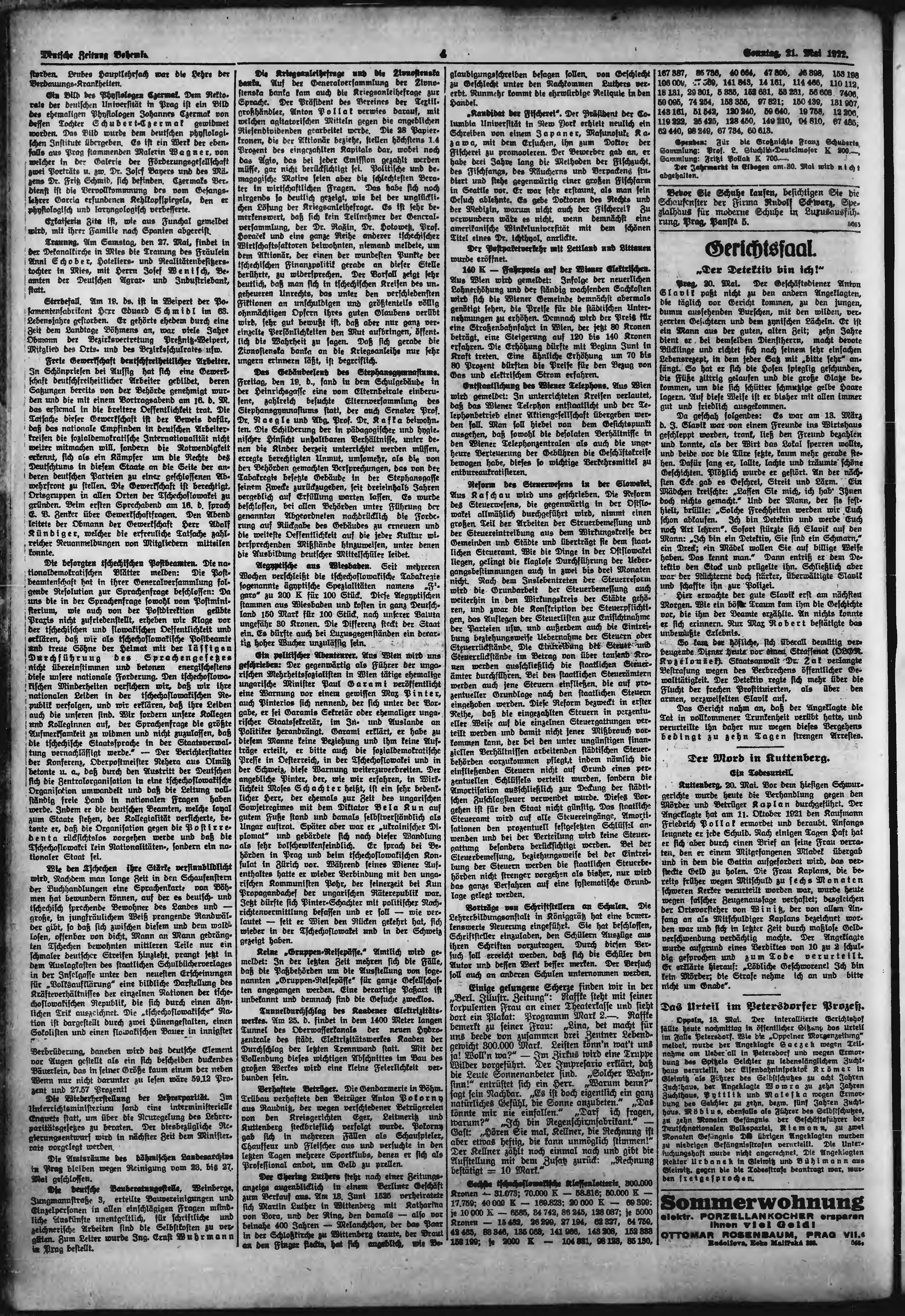 * Datum vydání výtisku: 21.5.1922 Číslo výtisku: 118 Poznámky k výtisku: ranní vydání;
