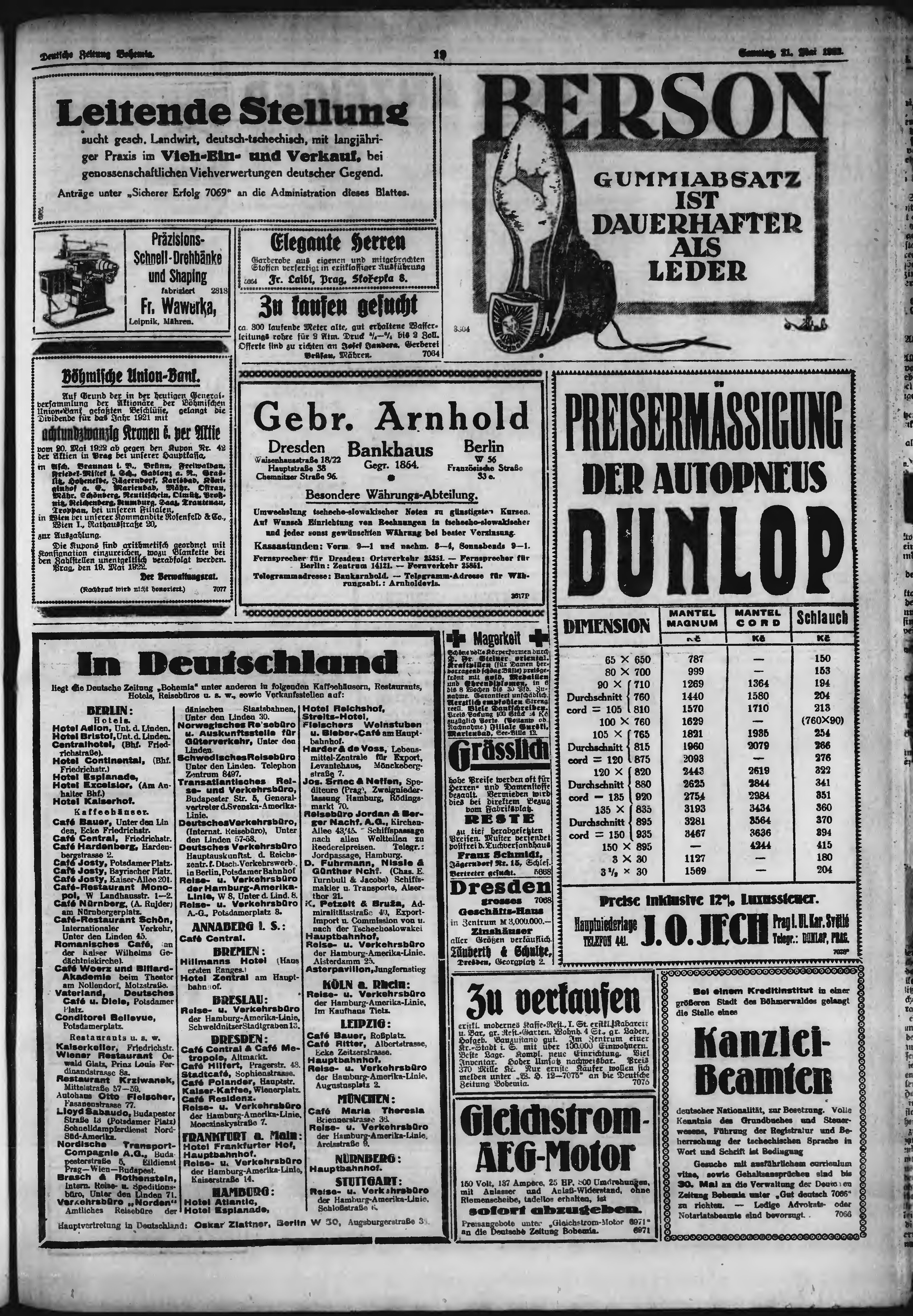 * Datum vydání výtisku: 21.5.1922 Číslo výtisku: 118 Poznámky k výtisku: ranní vydání;