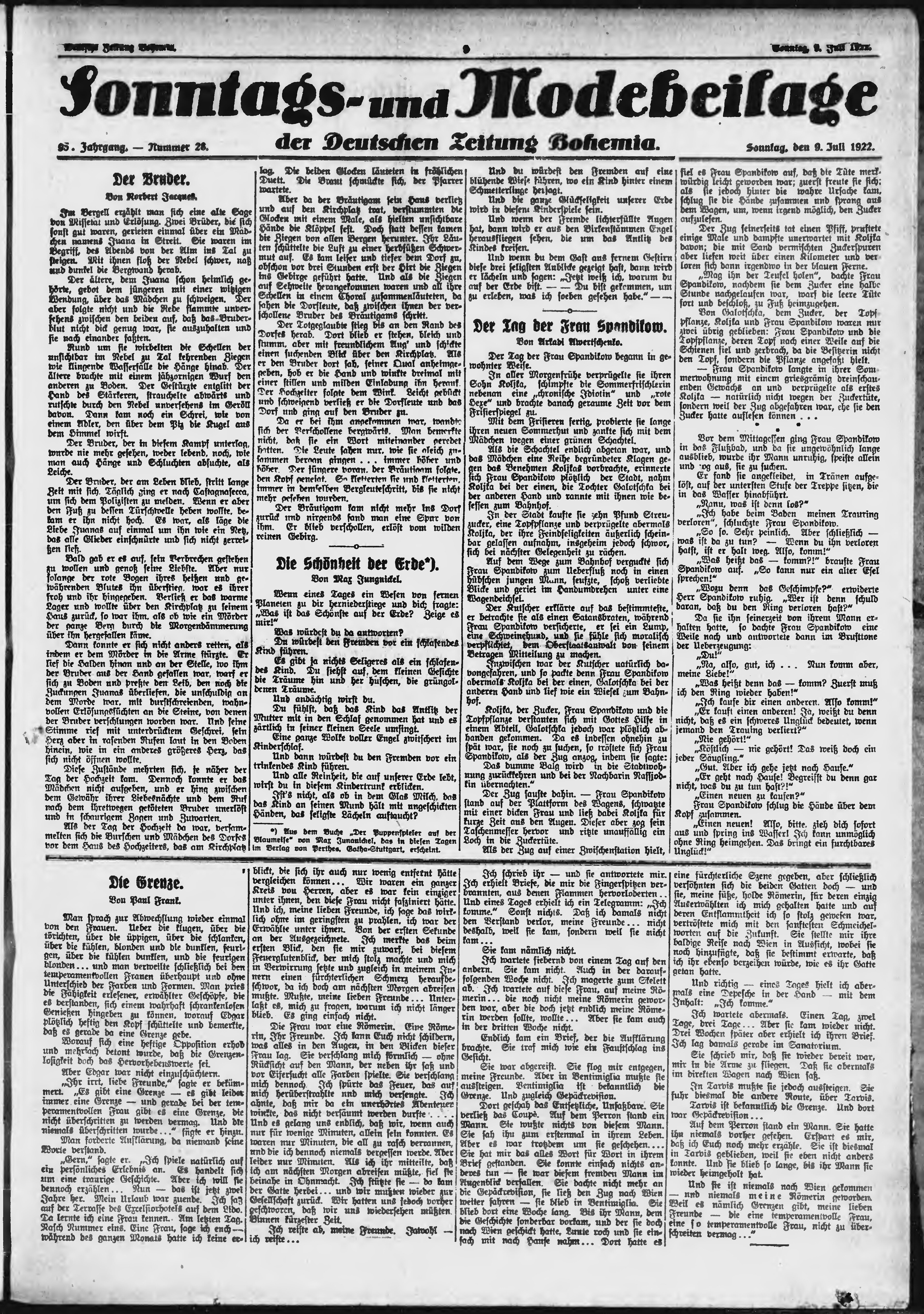 * Datum vydání výtisku: 9.7.1922 Číslo výtisku: 159 Poznámky k výtisku: ranní vydání;