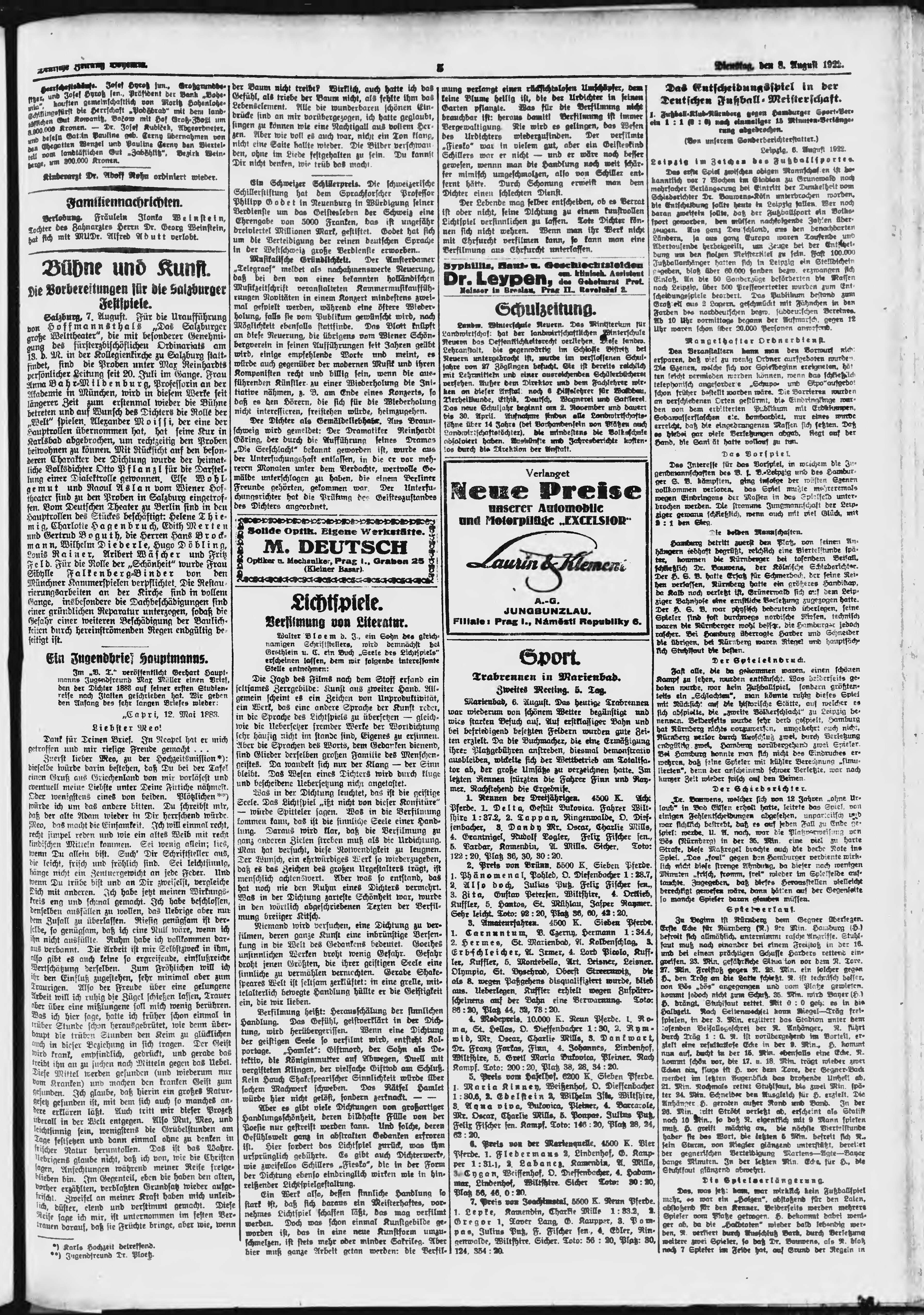 * Datum vydání výtisku: 8.8.1922 Číslo výtisku: 184 Poznámky k výtisku: ranní vydání;