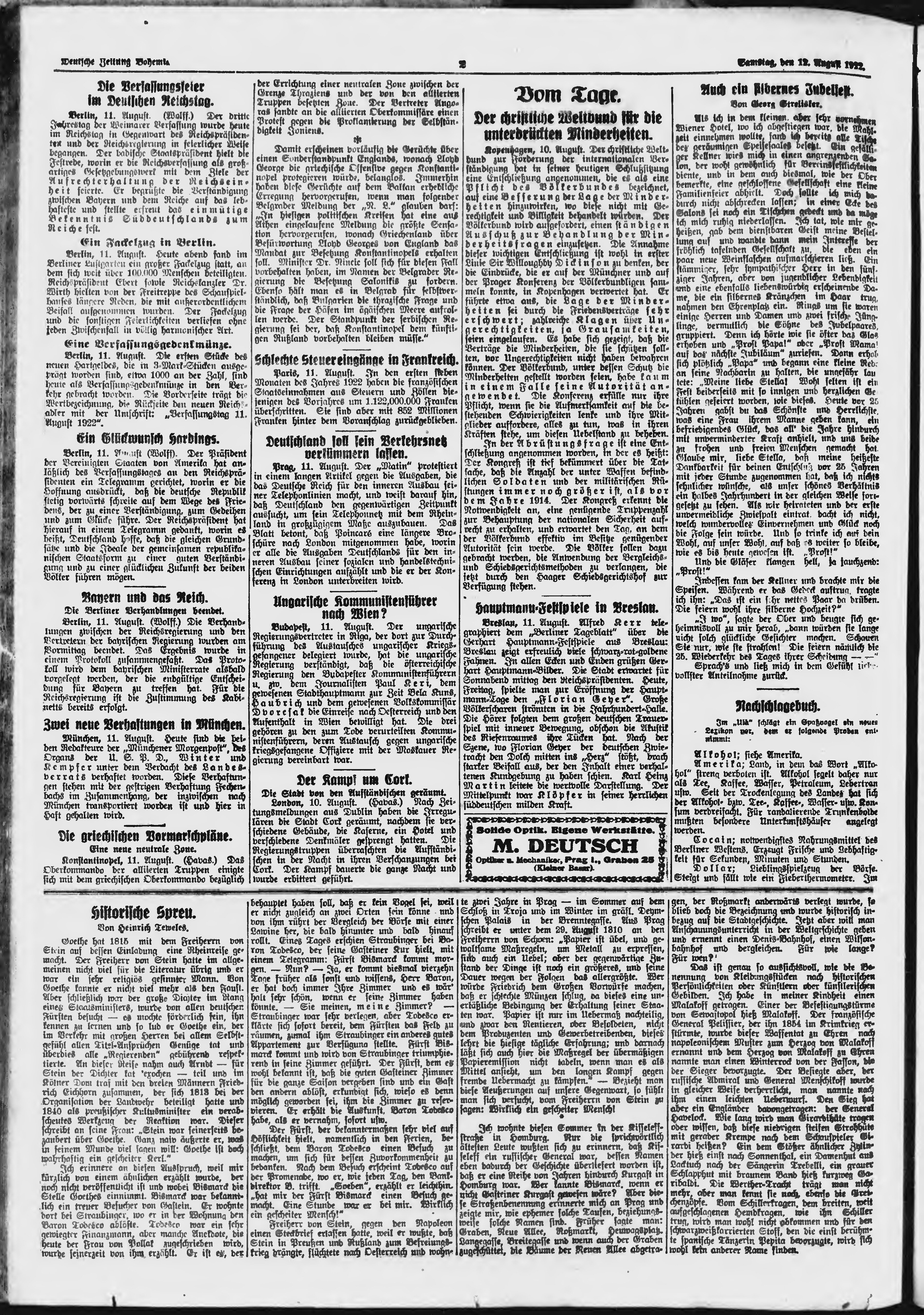 * Datum vydání výtisku: 12.8.1922 Číslo výtisku: 188 Poznámky k výtisku: ranní vydání;