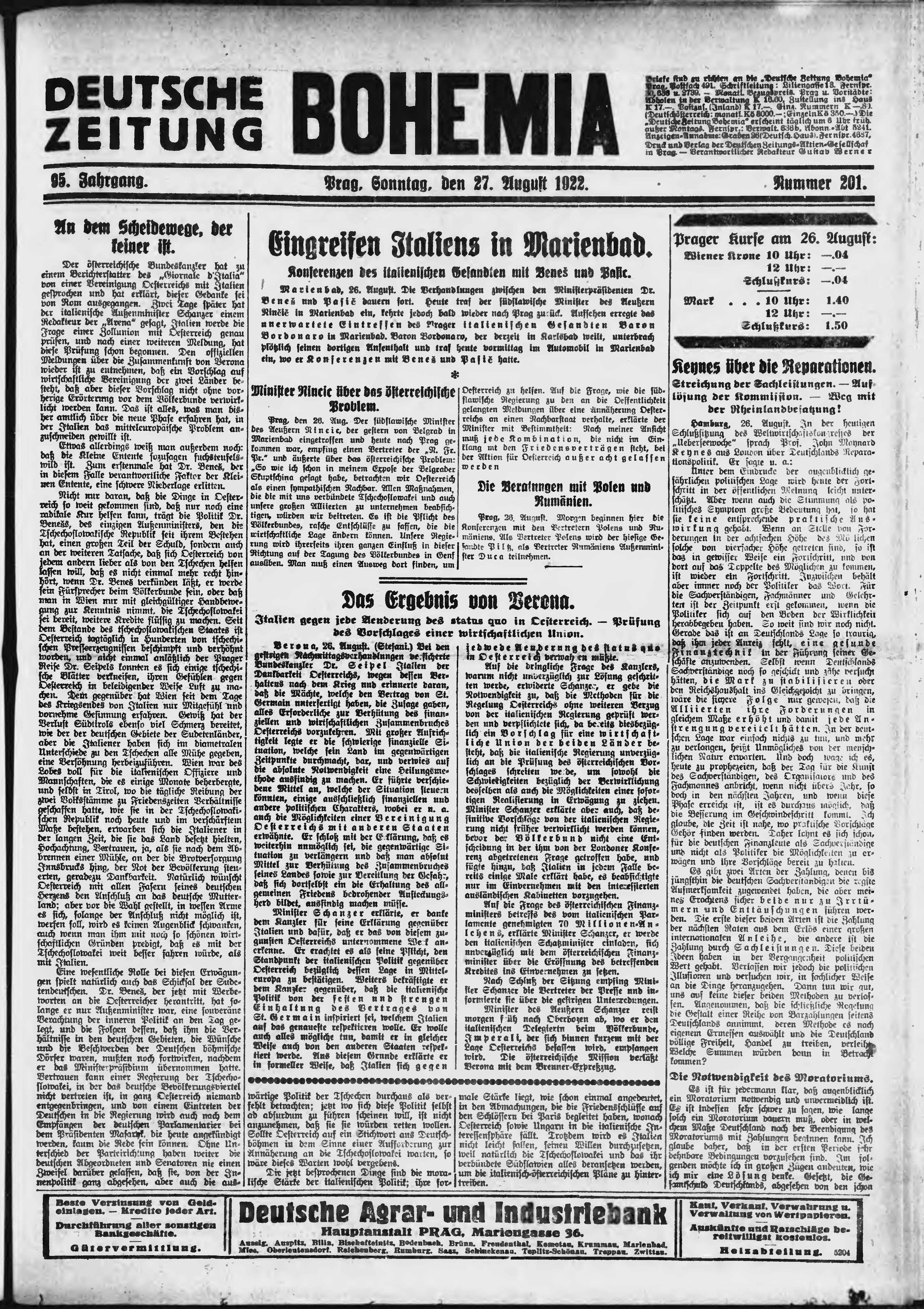 * Datum vydání výtisku: 27.8.1922 Číslo výtisku: 201 Poznámky k výtisku: ranní vydání;