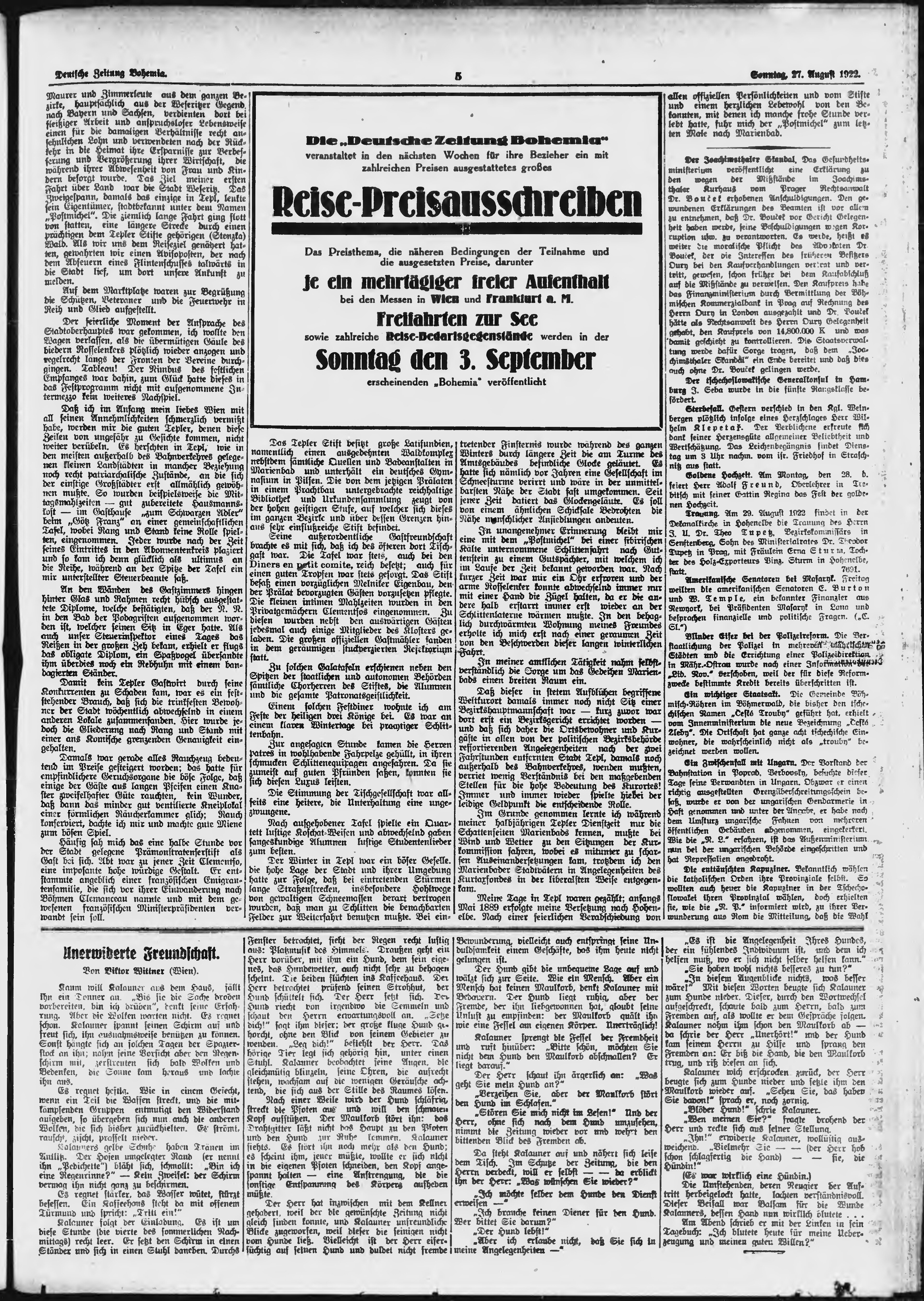 * Datum vydání výtisku: 27.8.1922 Číslo výtisku: 201 Poznámky k výtisku: ranní vydání;
