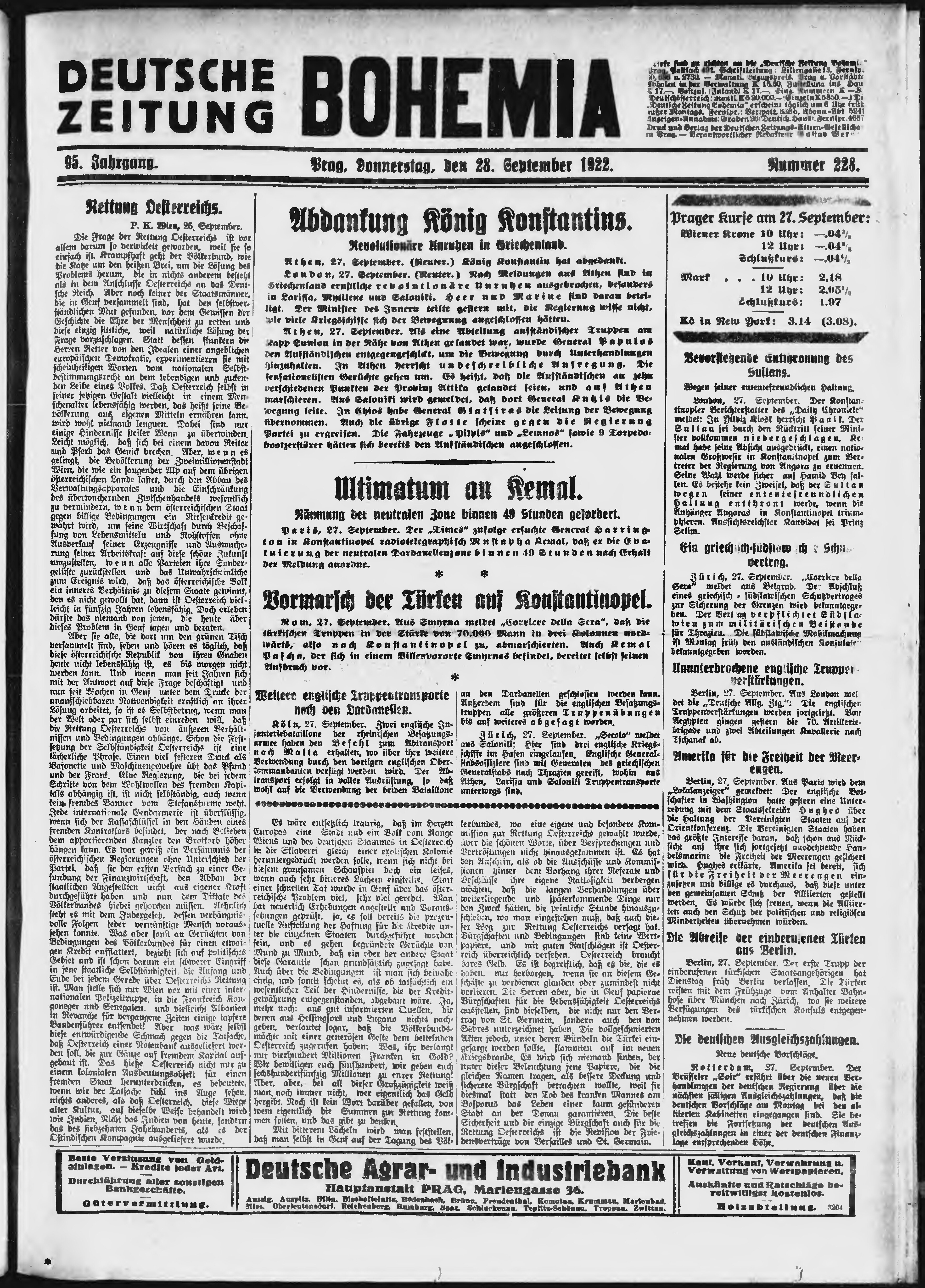 * Datum vydání výtisku: 28.9.1922 Číslo výtisku: 228 Poznámky k výtisku: ranní vydání;