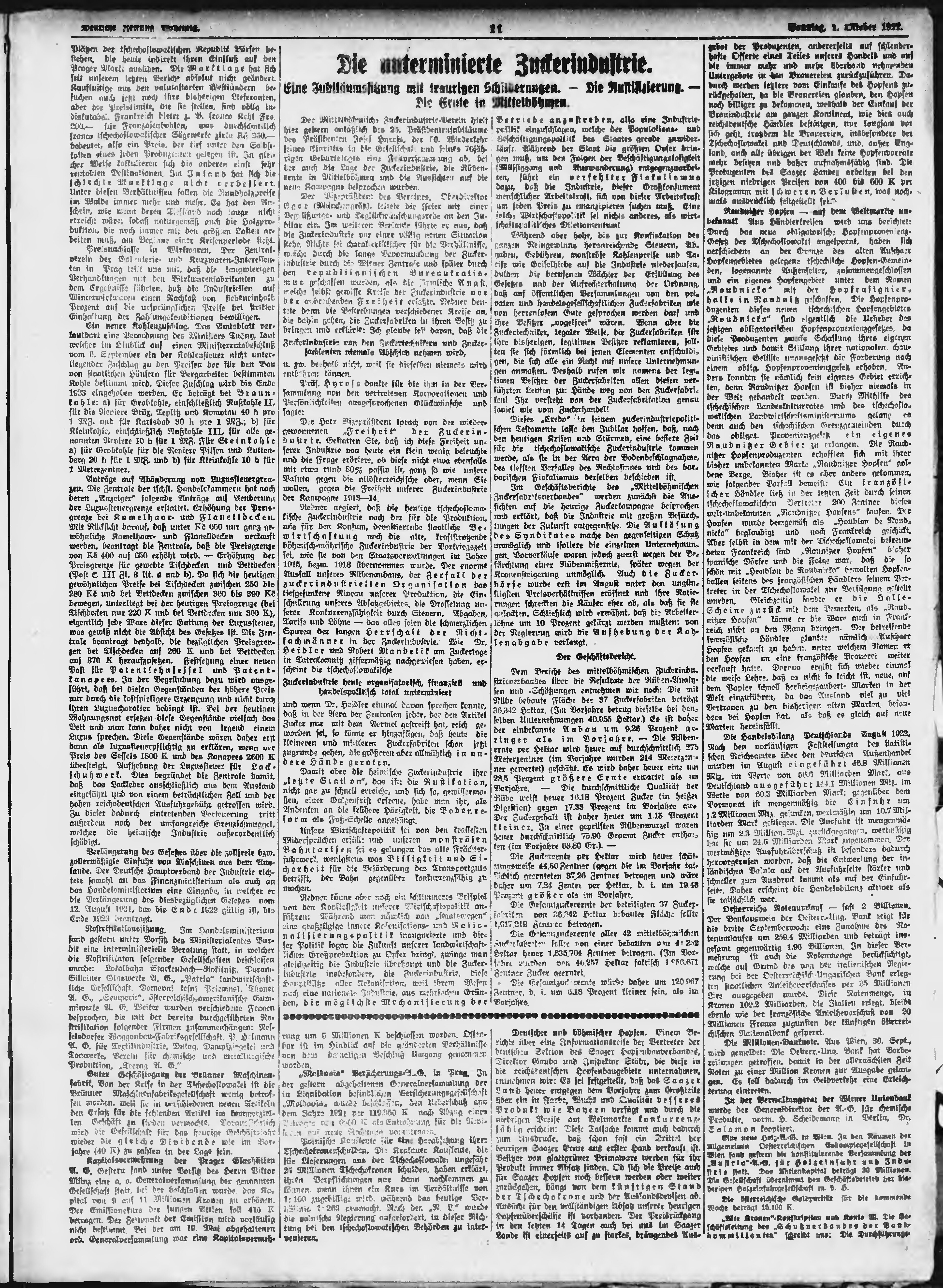 * Datum vydání výtisku: 1.10.1922 Číslo výtisku: 231 Poznámky k výtisku: ranní vydání;