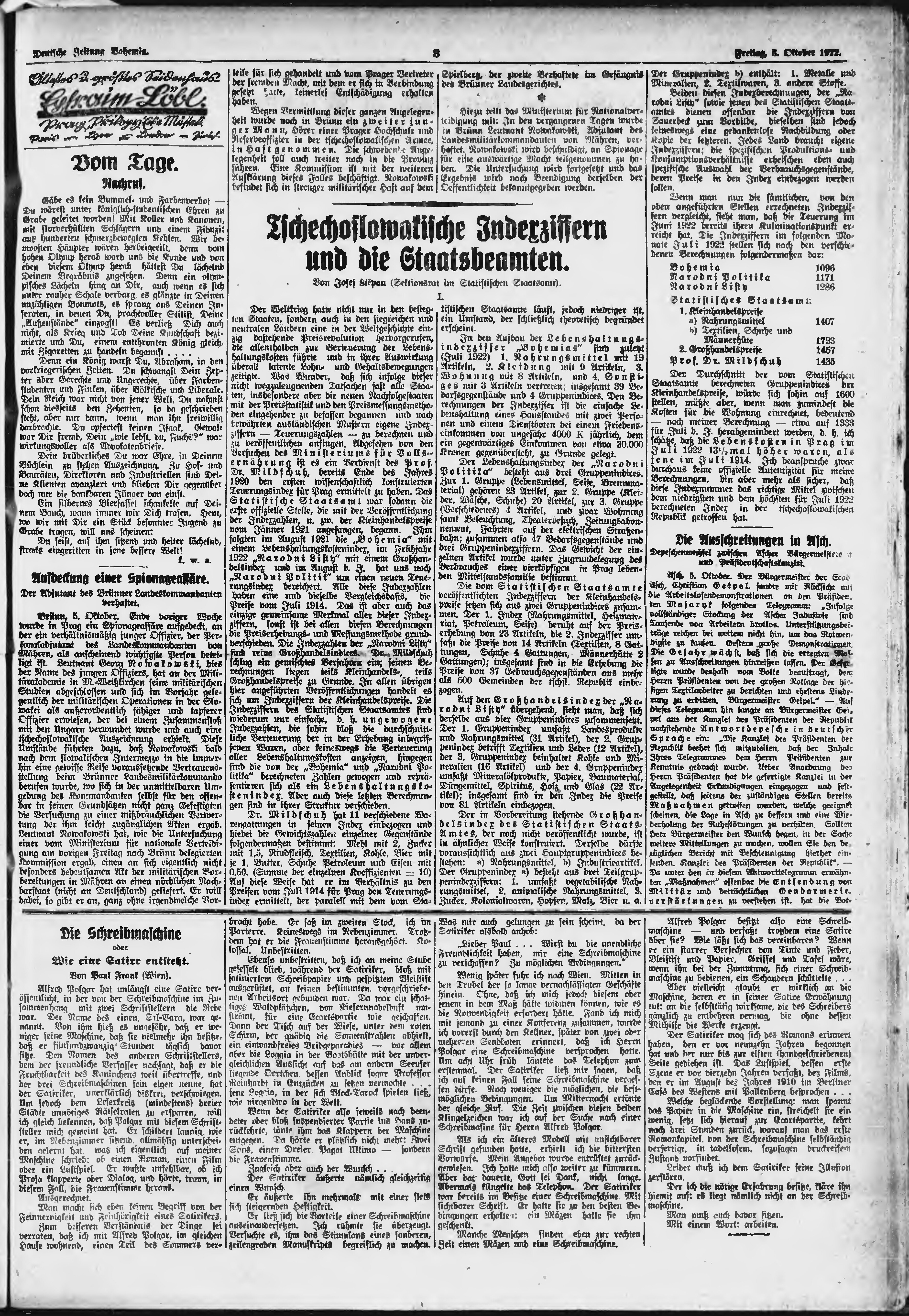 * Datum vydání výtisku: 6.10.1922 Číslo výtisku: 235 Poznámky k výtisku: ranní vydání;
