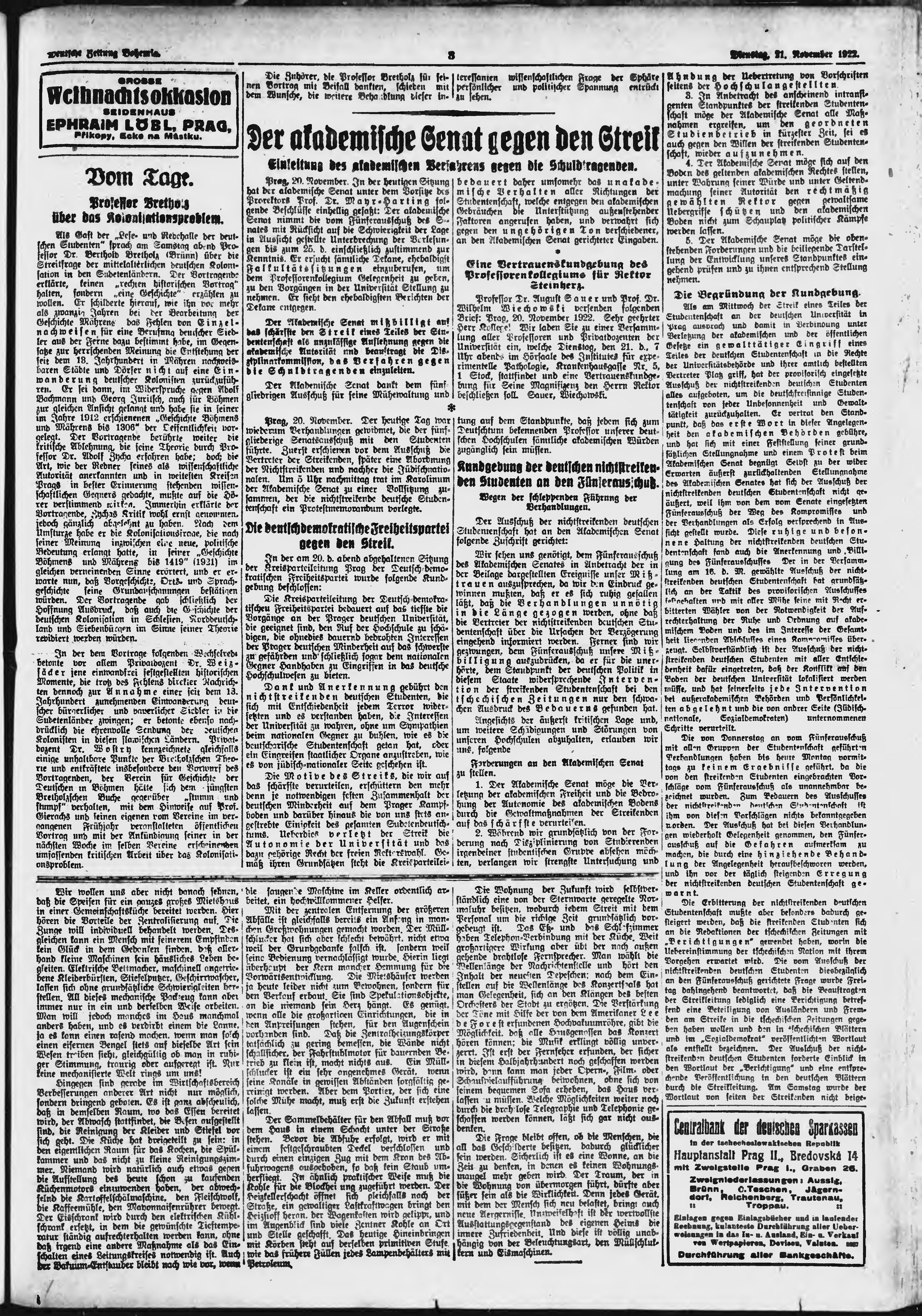* Datum vydání výtisku: 21.11.1922 Číslo výtisku: 273 Poznámky k výtisku: ranní vydání;