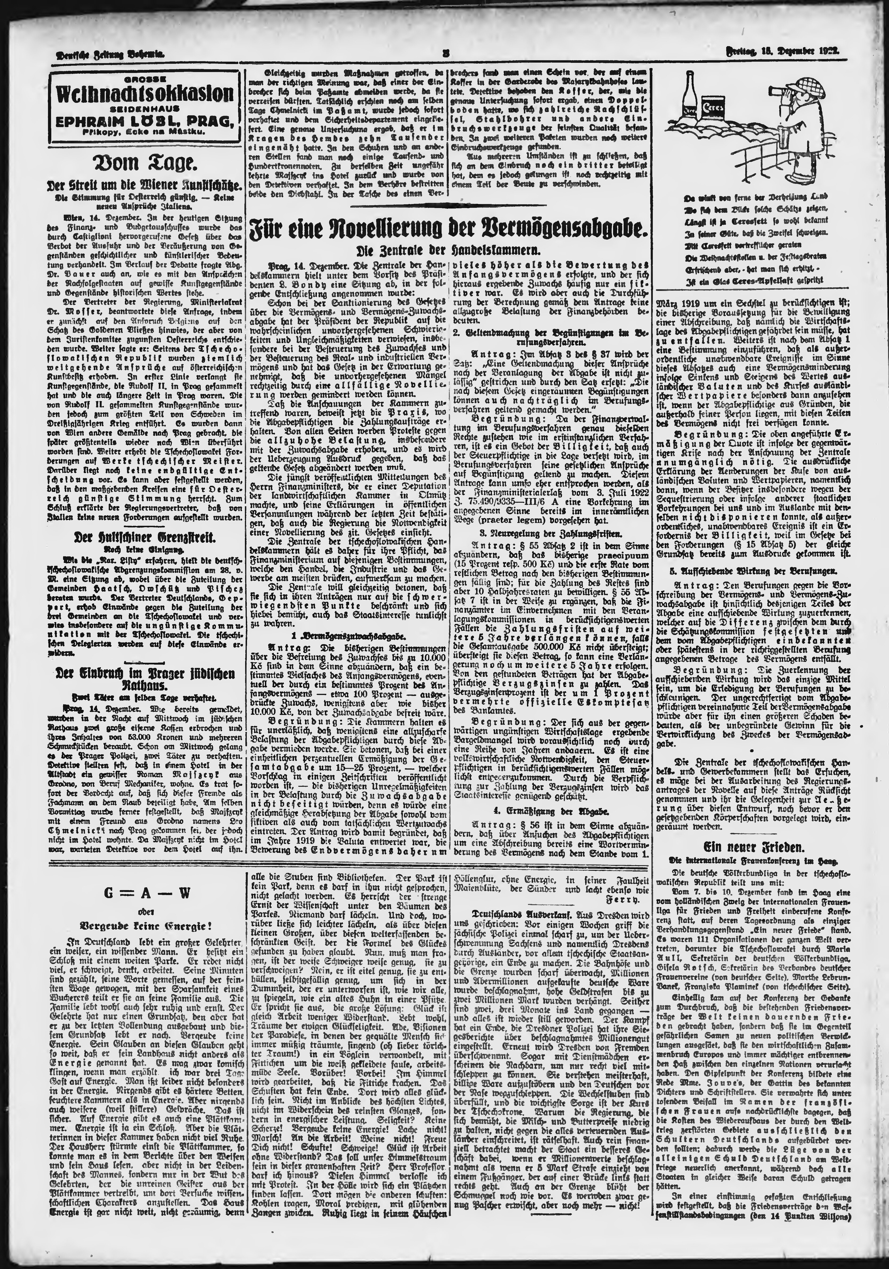 * Datum vydání výtisku: 15.12.1922 Číslo výtisku: 294 Poznámky k výtisku: ranní vydání;