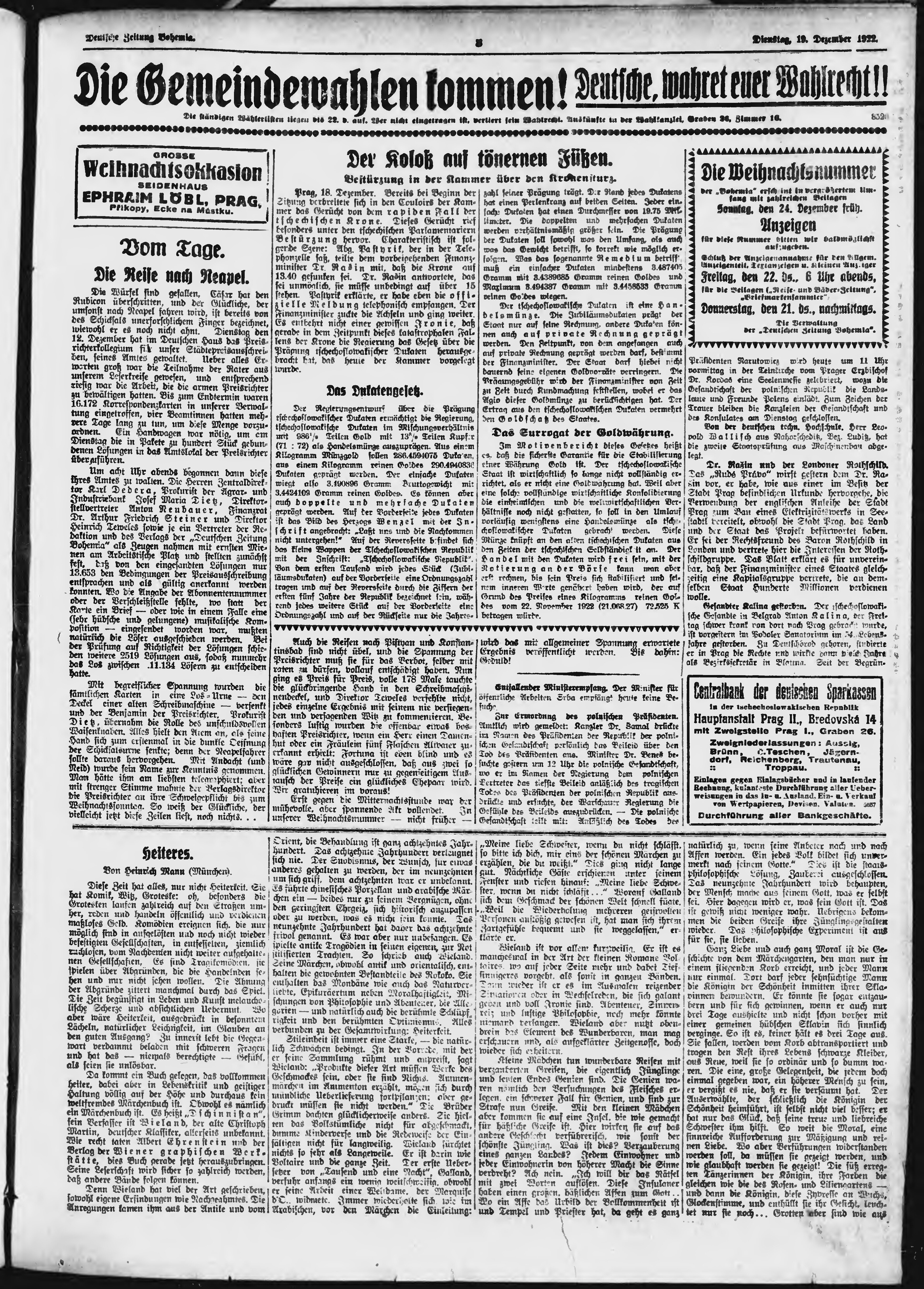 * Datum vydání výtisku: 19.12.1922 Číslo výtisku: 297 Poznámky k výtisku: ranní vydání;
