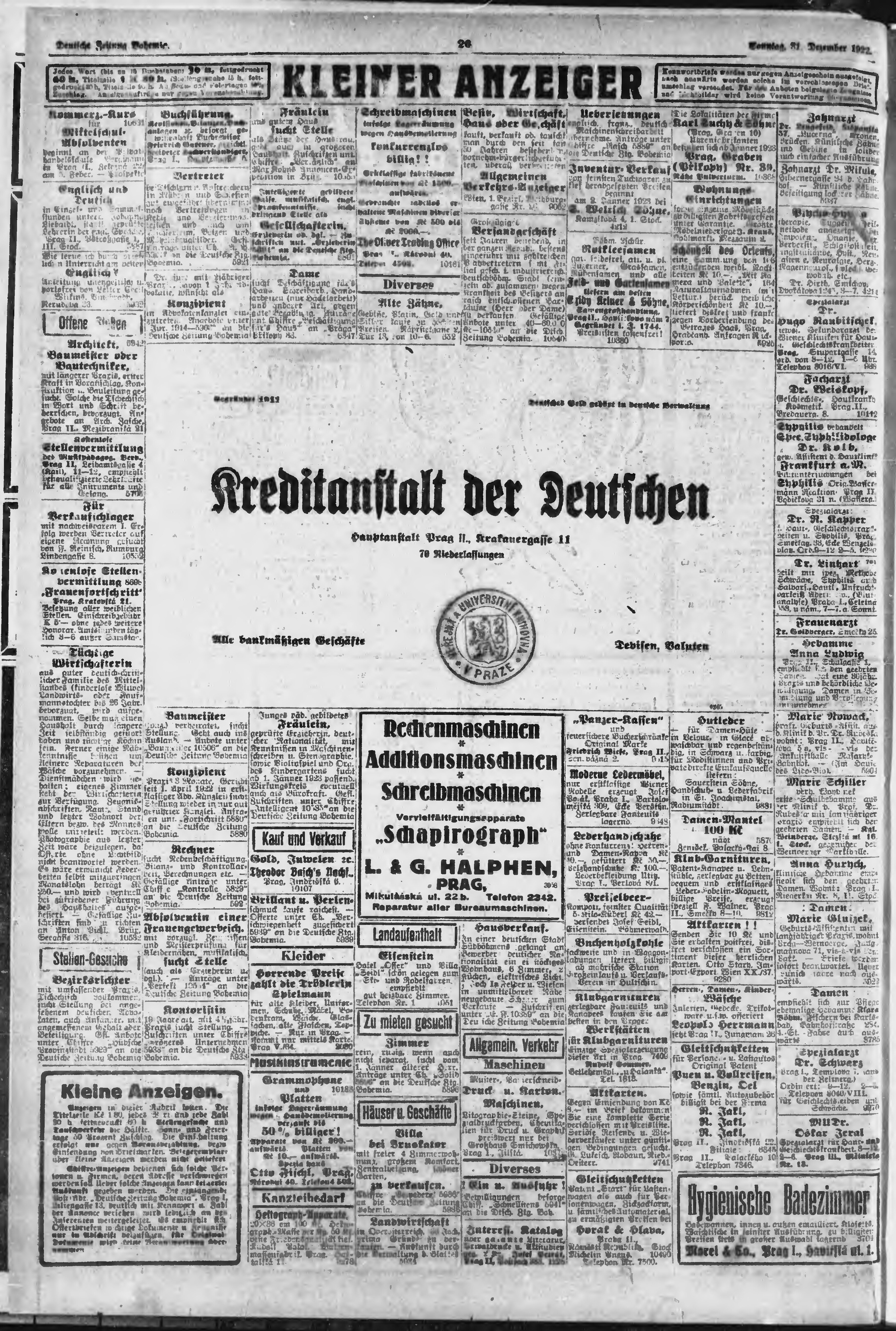 * Datum vydání výtisku: 31.12.1922 Číslo výtisku: 306 Poznámky k výtisku: ranní vydání; s. 16 - 17 není k dispozici;