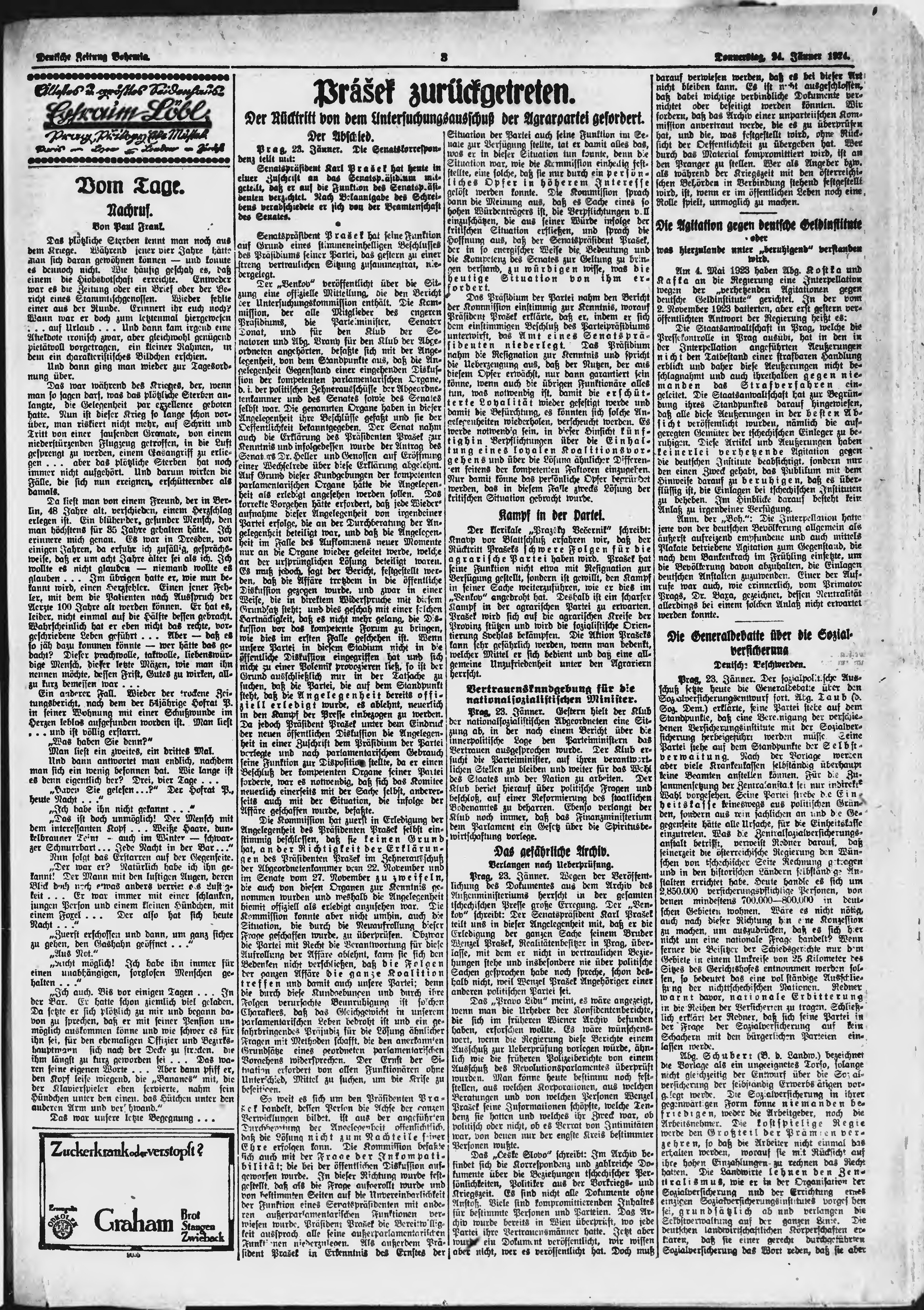 * Datum vydání výtisku: 24.1.1924 Číslo výtisku: 21 Poznámky k výtisku: ranní vydání;