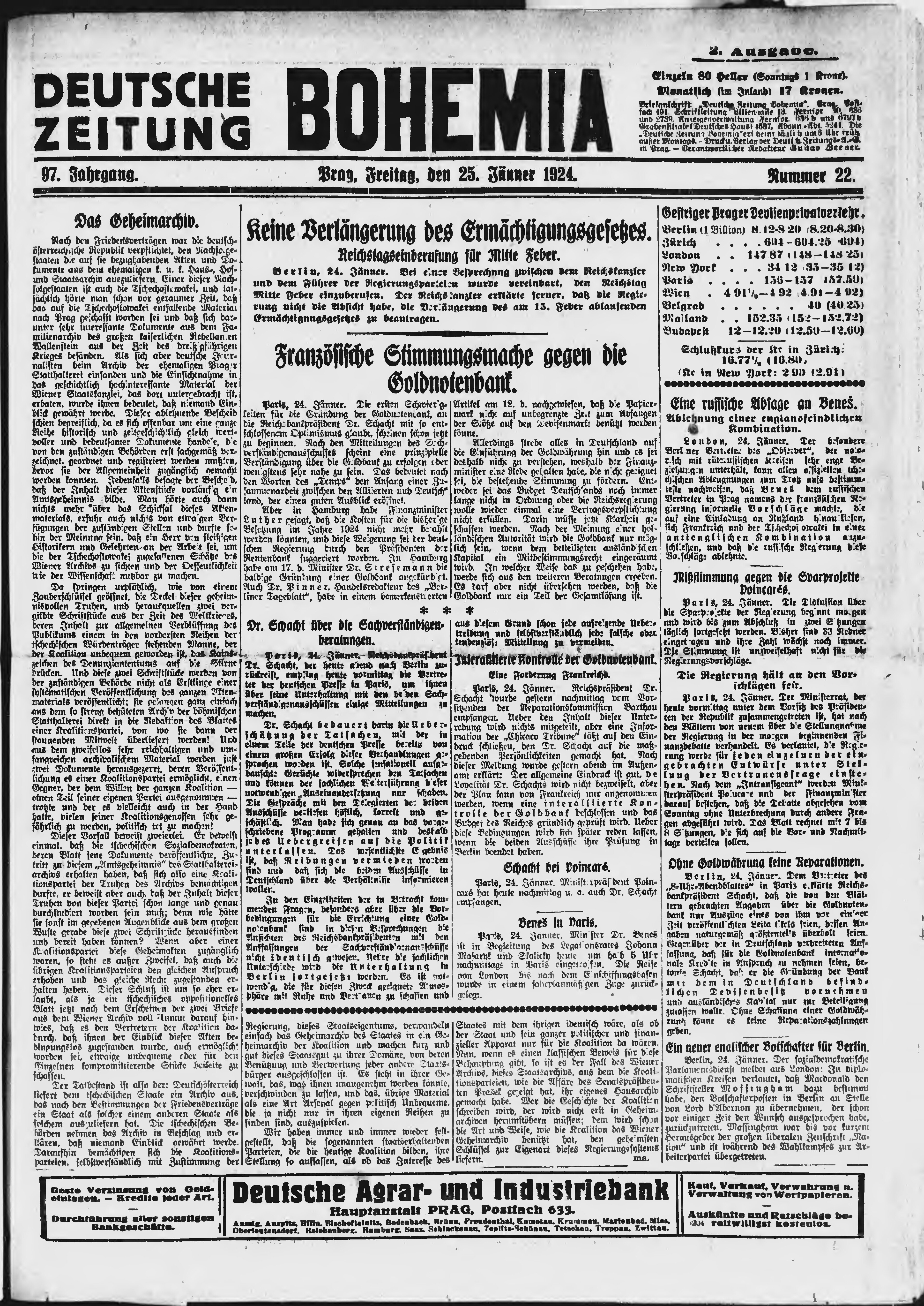 * Datum vydání výtisku: 25.1.1924 Číslo výtisku: 22 Poznámky k výtisku: ranní vydání;