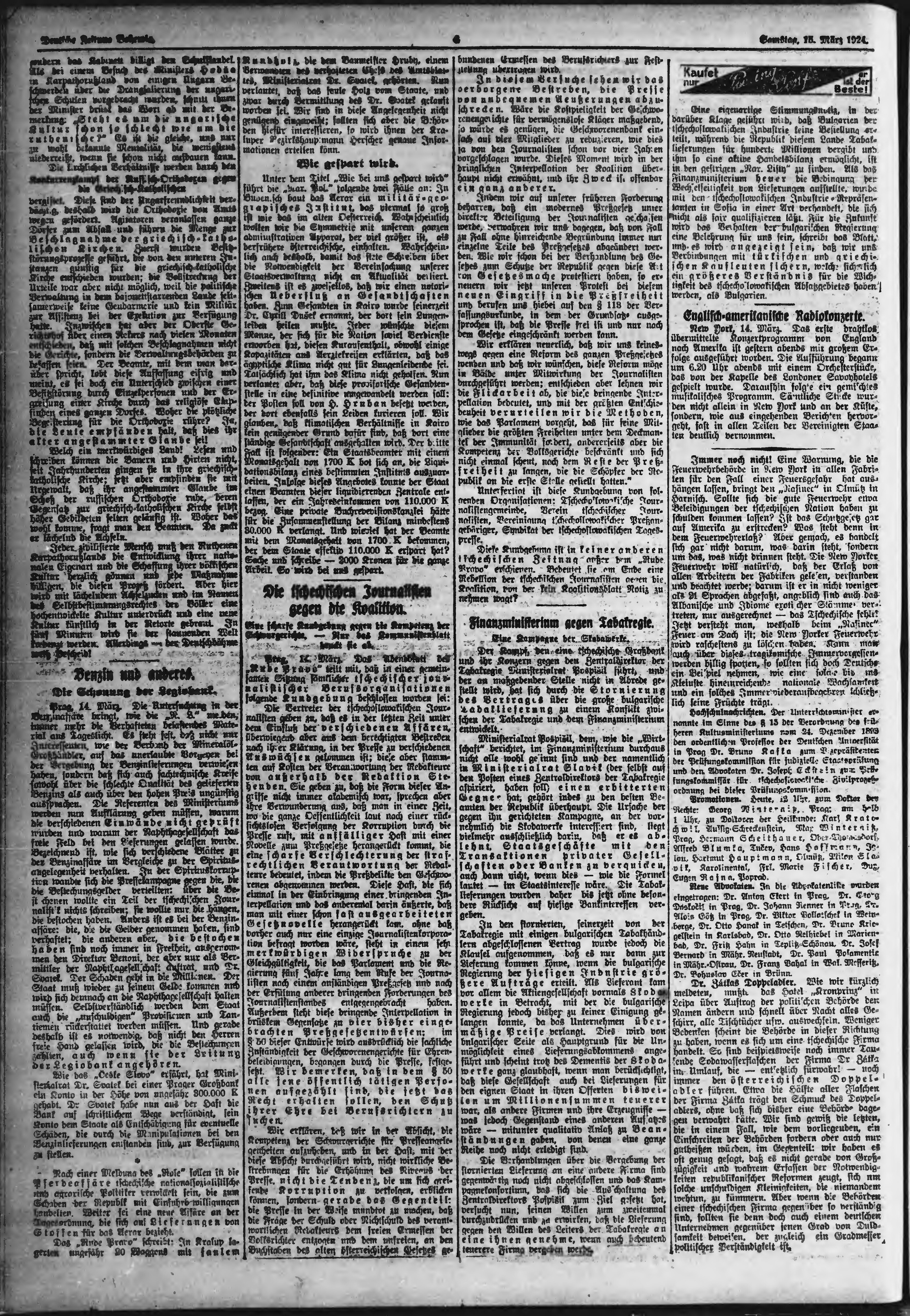 * Datum vydání výtisku: 15.3.1924 Číslo výtisku: 64 Poznámky k výtisku: ranní vydání;