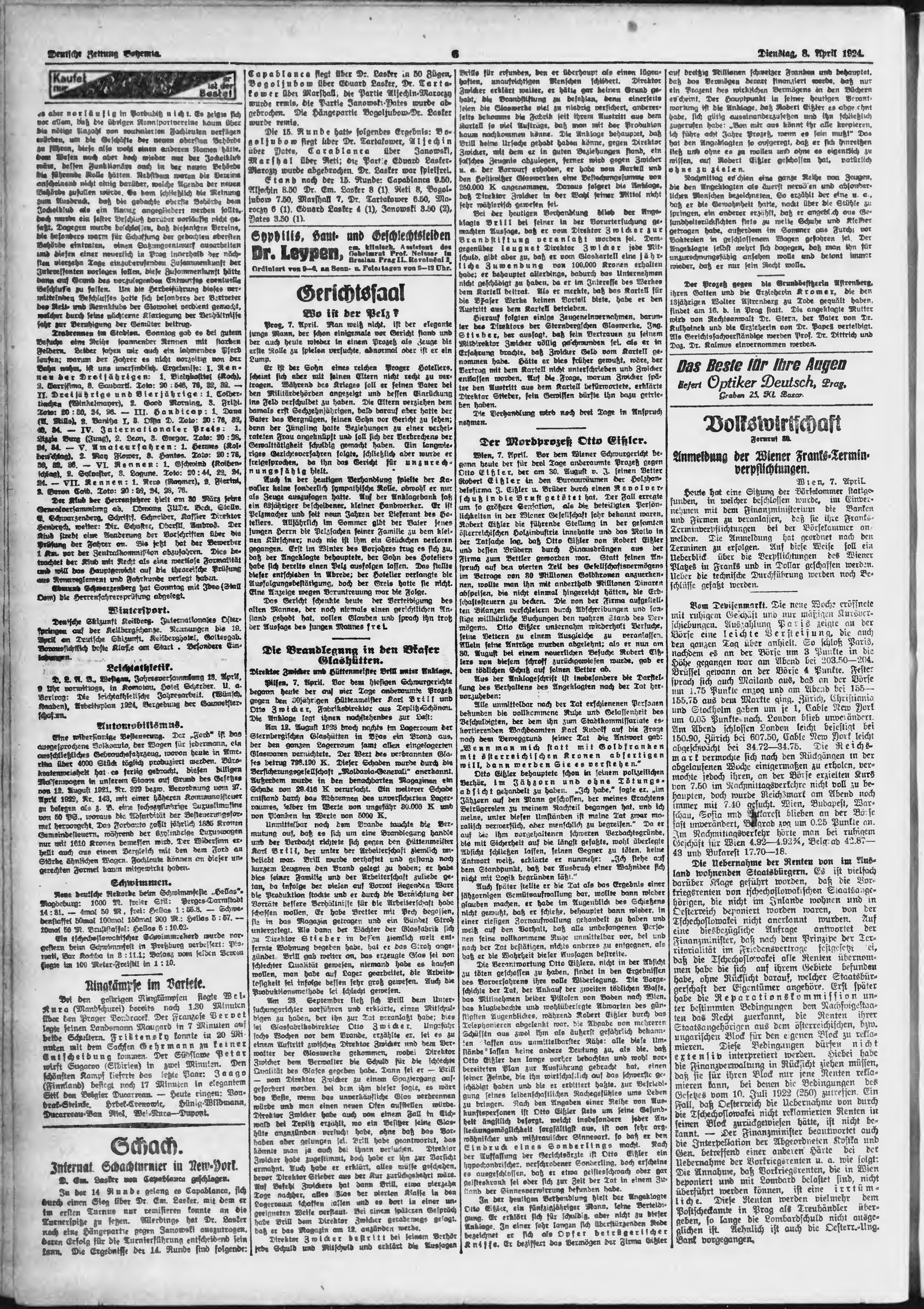 * Datum vydání výtisku: 8.4.1924 Číslo výtisku: 84 Poznámky k výtisku: ranní vydání;