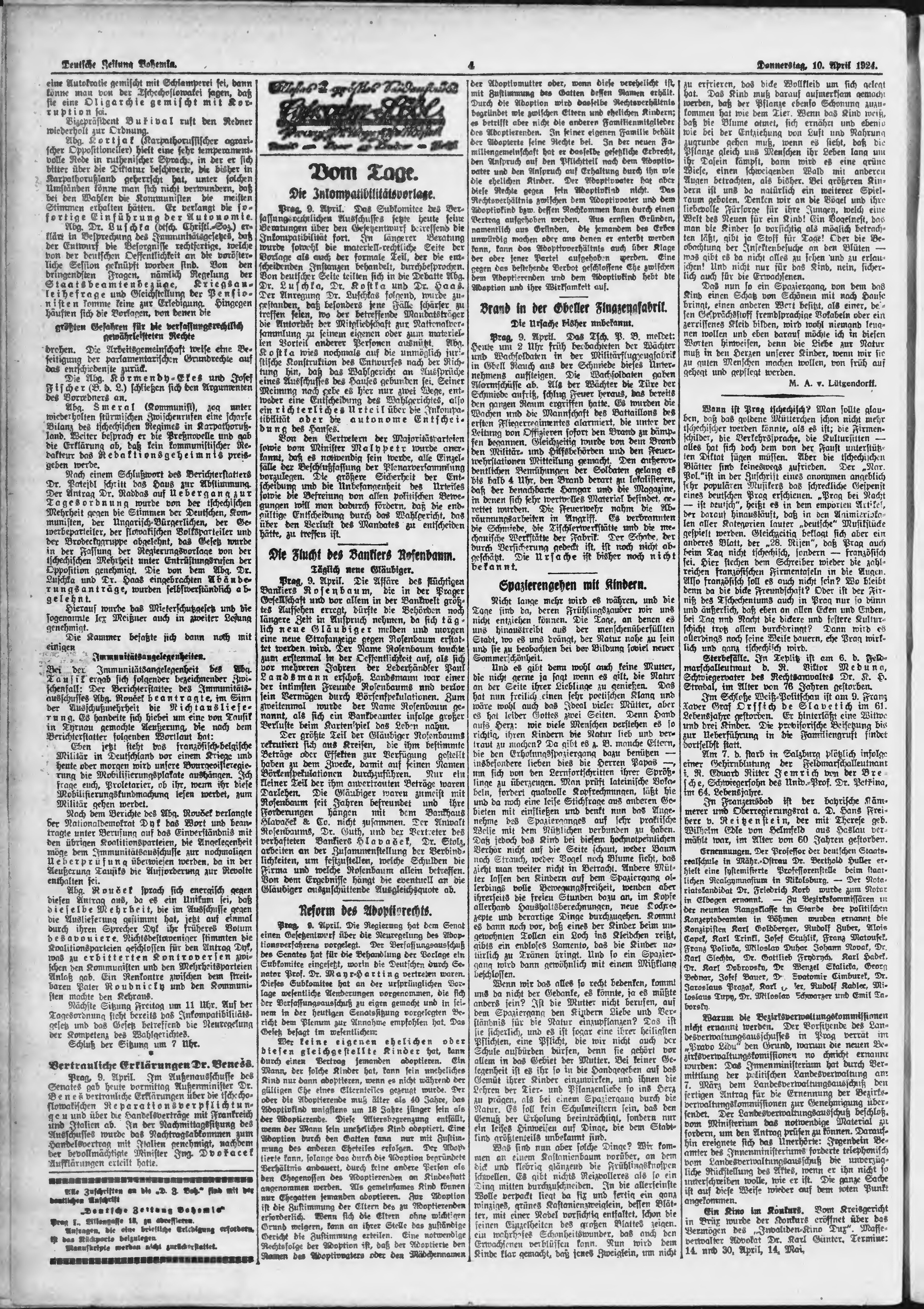 * Datum vydání výtisku: 10.4.1924 Číslo výtisku: 86 Poznámky k výtisku: ranní vydání;