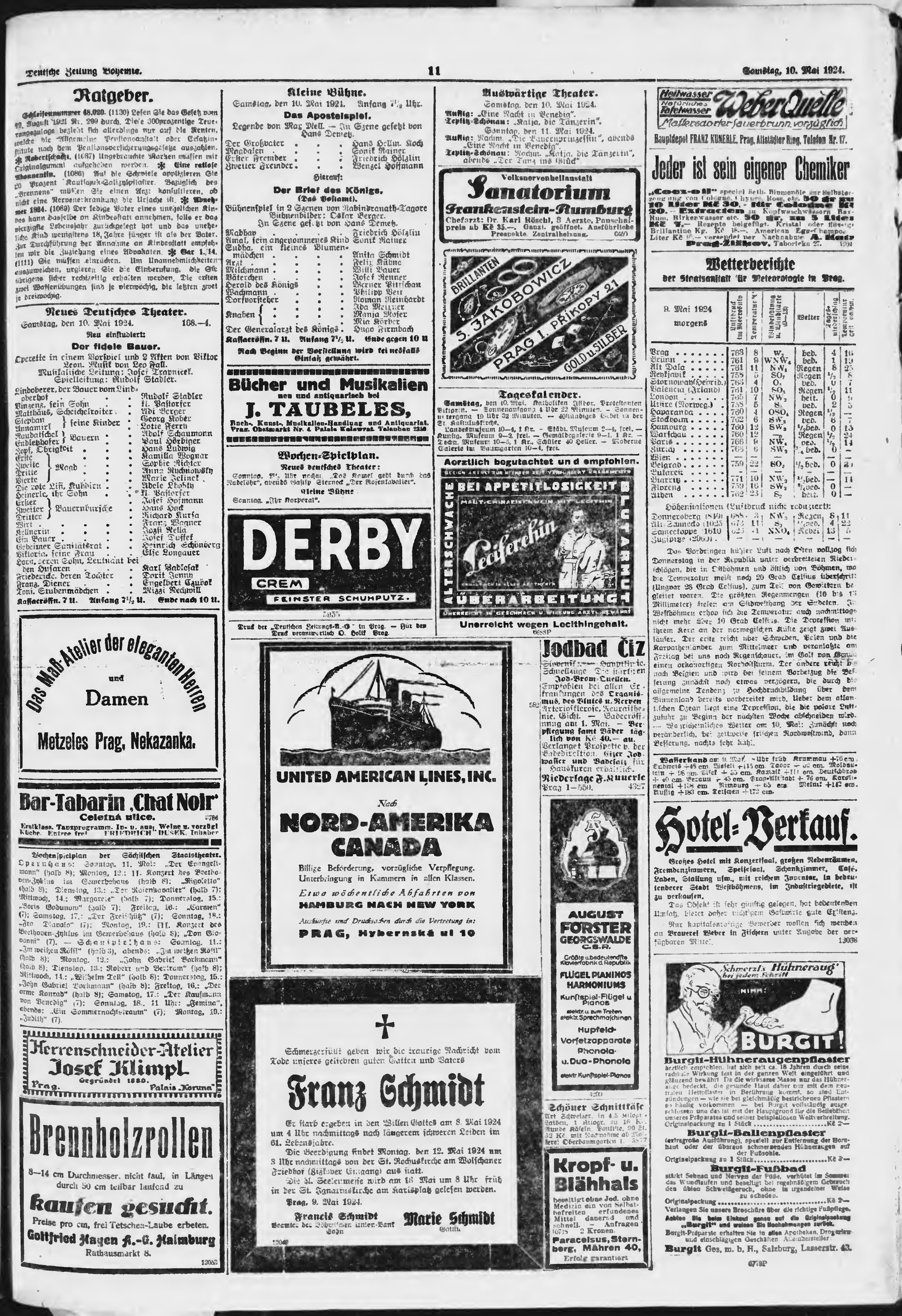 * Datum vydání výtisku: 10.5.1924 Číslo výtisku: 110 Poznámky k výtisku: ranní vydání;