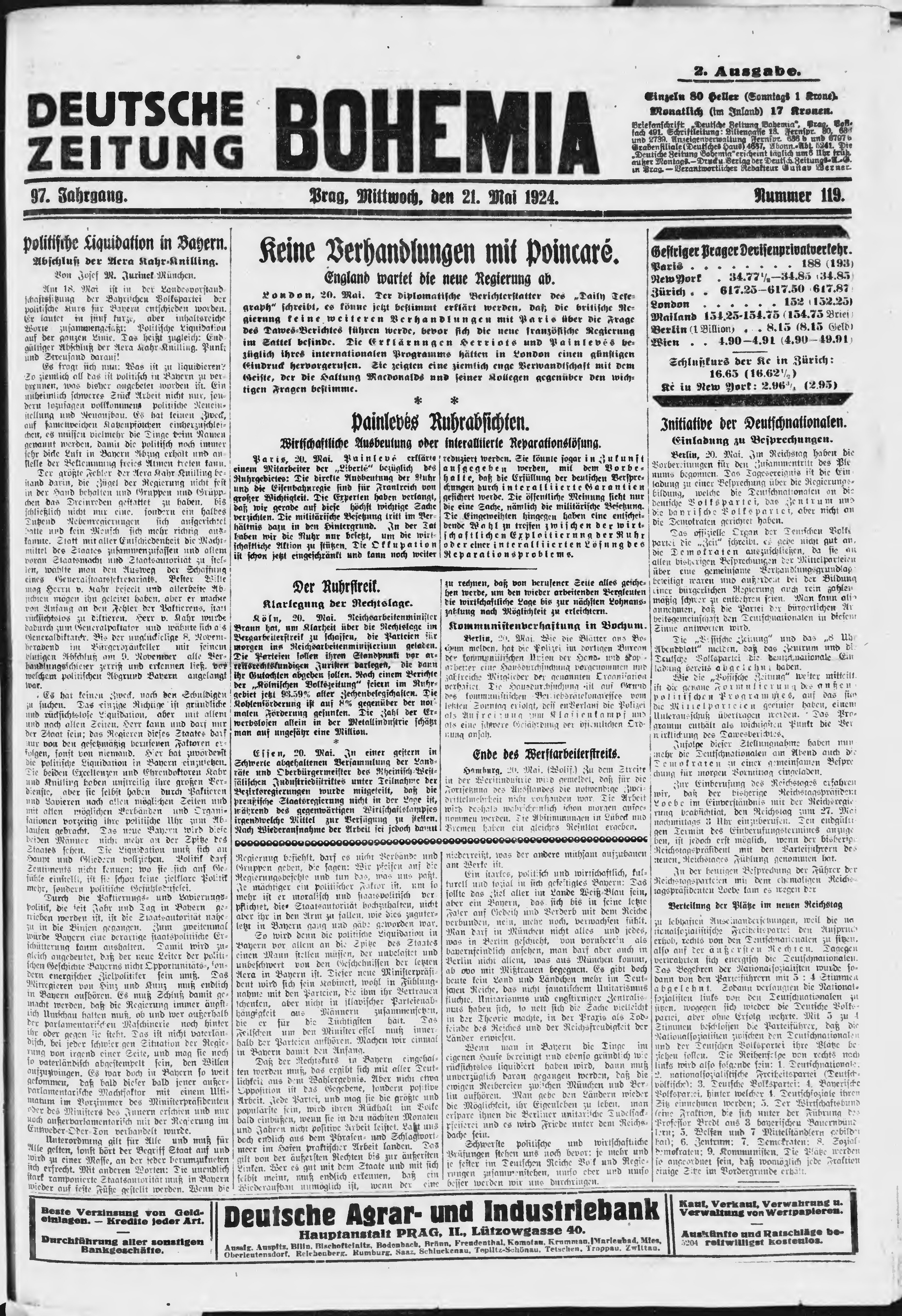 * Datum vydání výtisku: 21.5.1924 Číslo výtisku: 119 Poznámky k výtisku: ranní vydání;