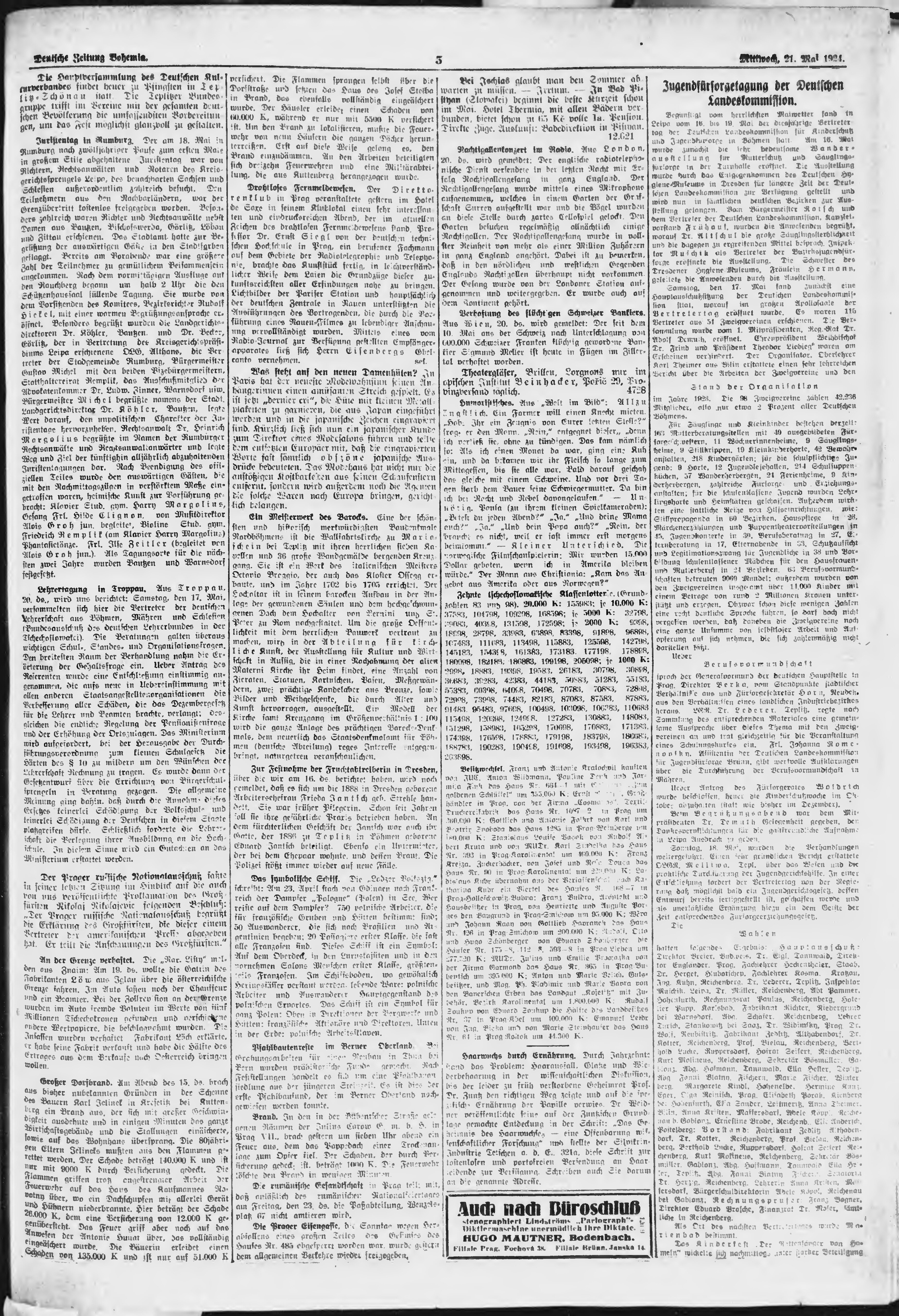 * Datum vydání výtisku: 21.5.1924 Číslo výtisku: 119 Poznámky k výtisku: ranní vydání;