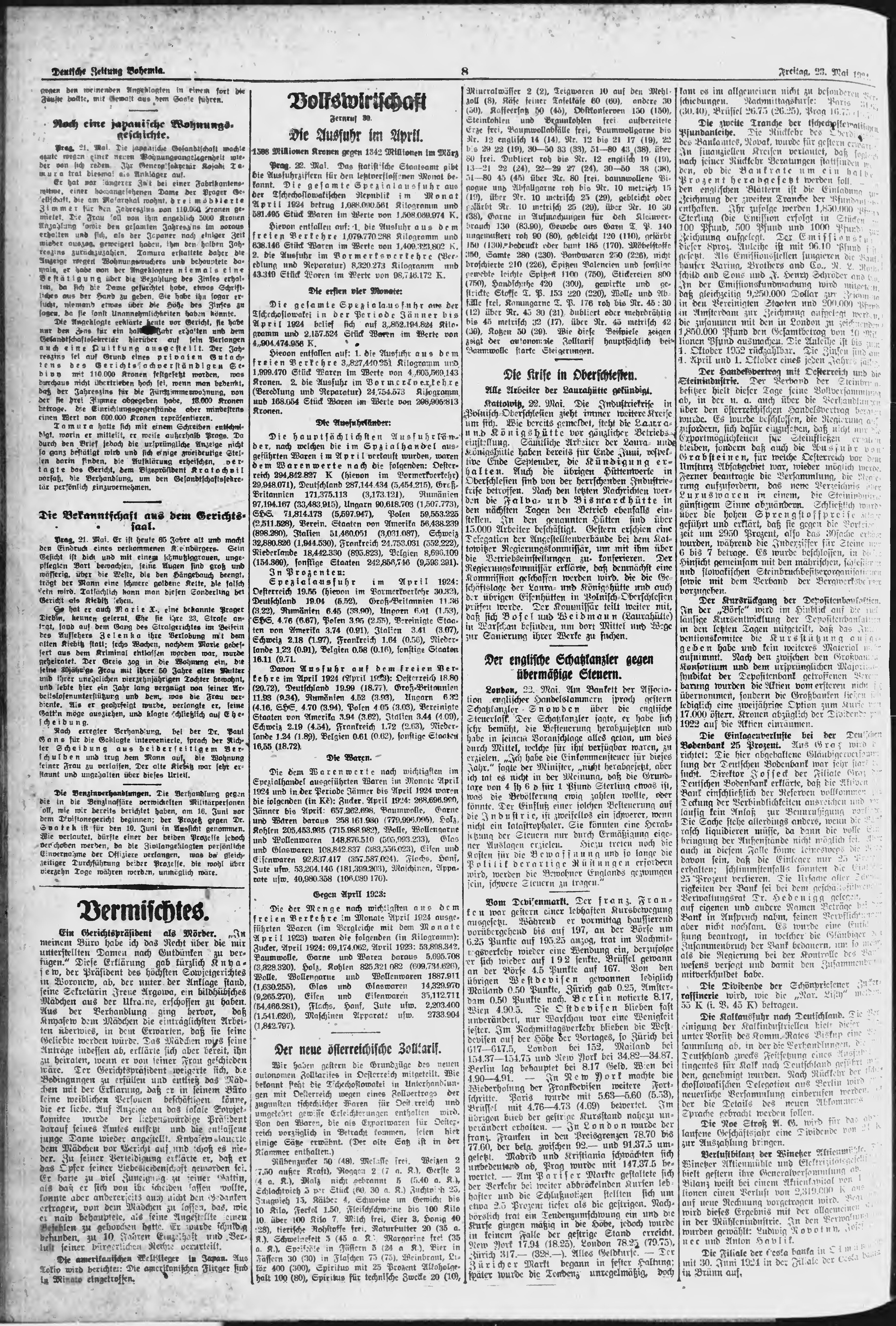 * Datum vydání výtisku: 23.5.1924 Číslo výtisku: 121 Poznámky k výtisku: ranní vydání;