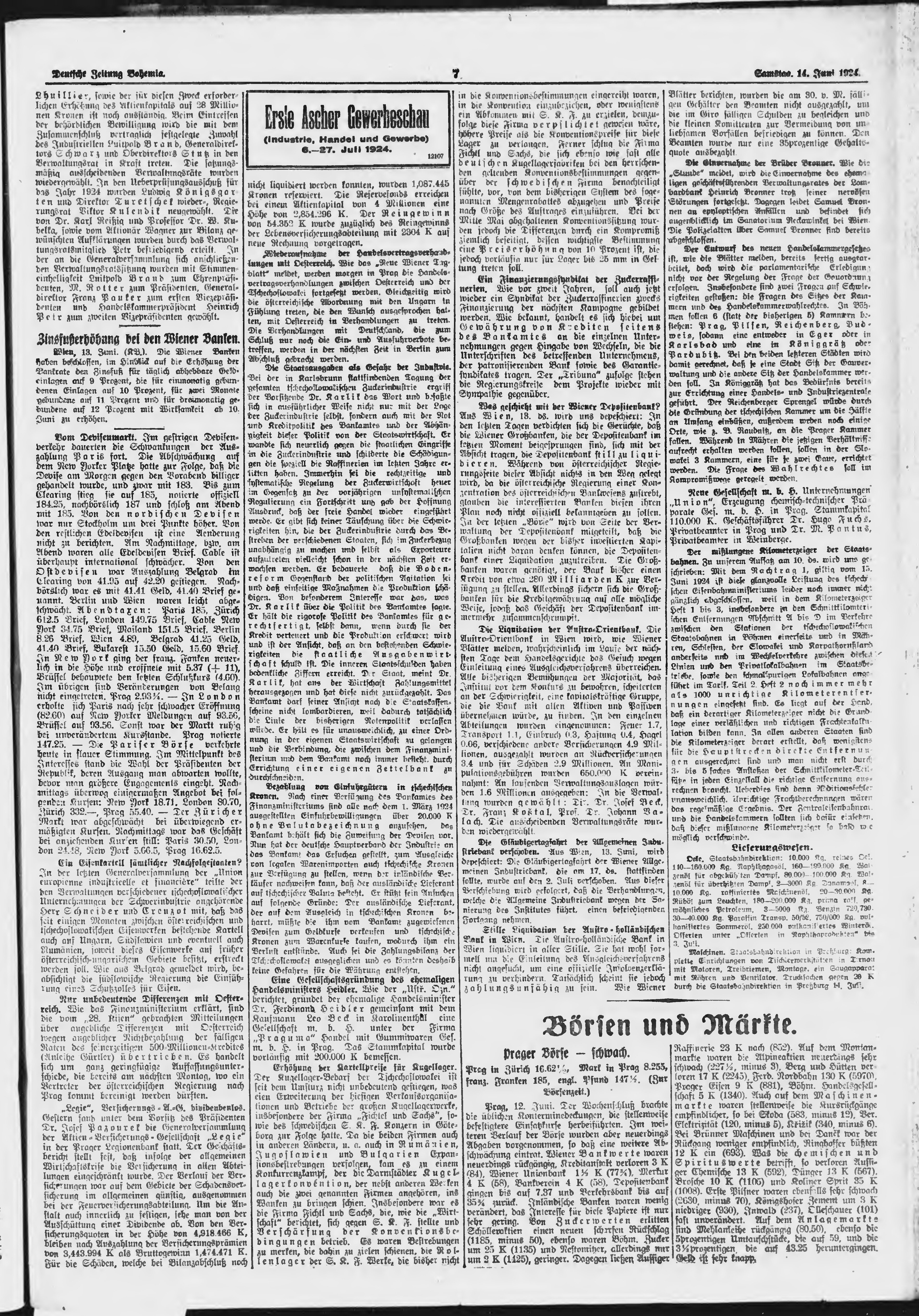 * Datum vydání výtisku: 14.6.1924 Číslo výtisku: 139 Poznámky k výtisku: ranní vydání;