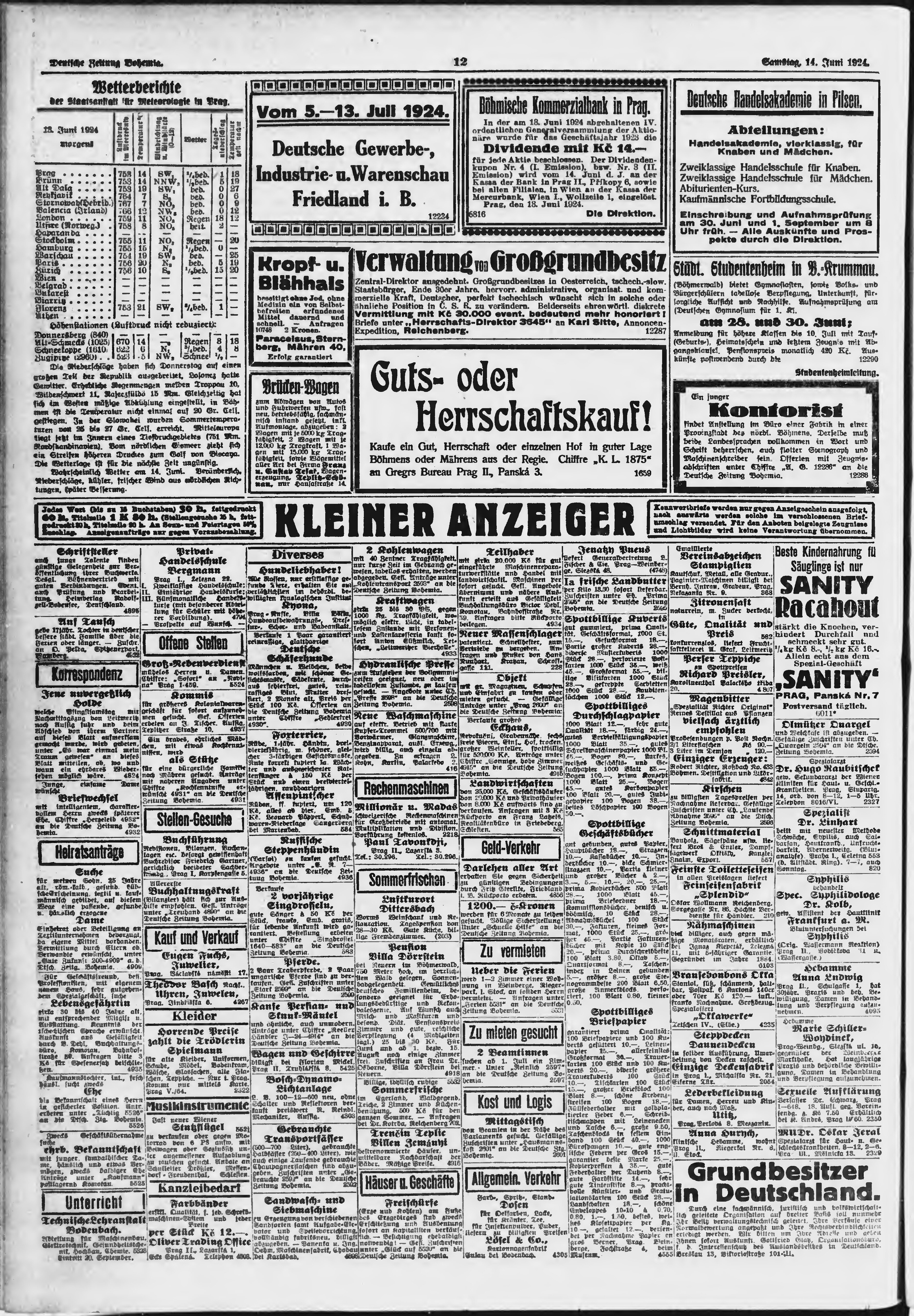 * Datum vydání výtisku: 14.6.1924 Číslo výtisku: 139 Poznámky k výtisku: ranní vydání;