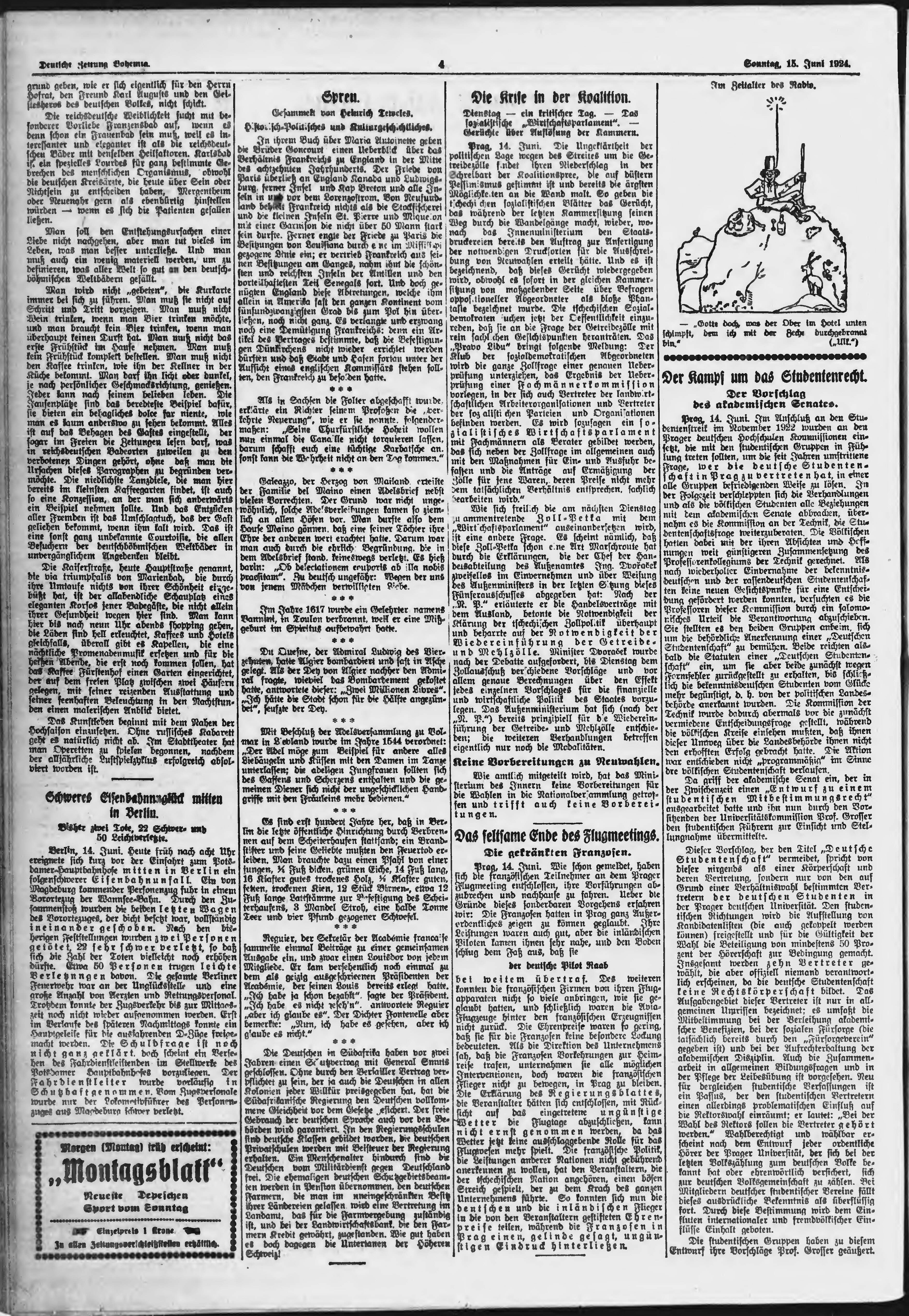* Datum vydání výtisku: 15.6.1924 Číslo výtisku: 140 Poznámky k výtisku: ranní vydání;