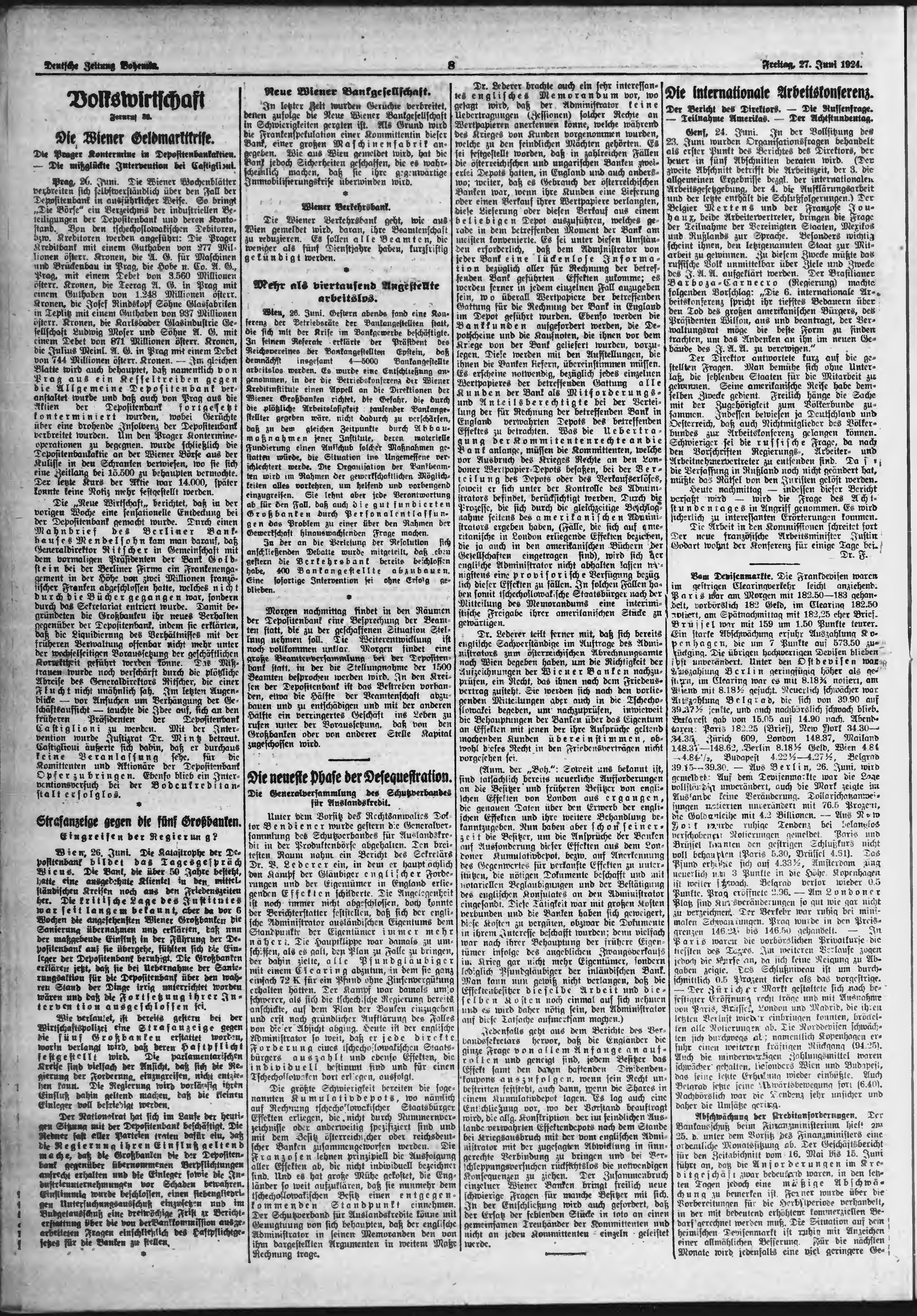 * Datum vydání výtisku: 27.6.1924 Číslo výtisku: 150 Poznámky k výtisku: ranní vydání;