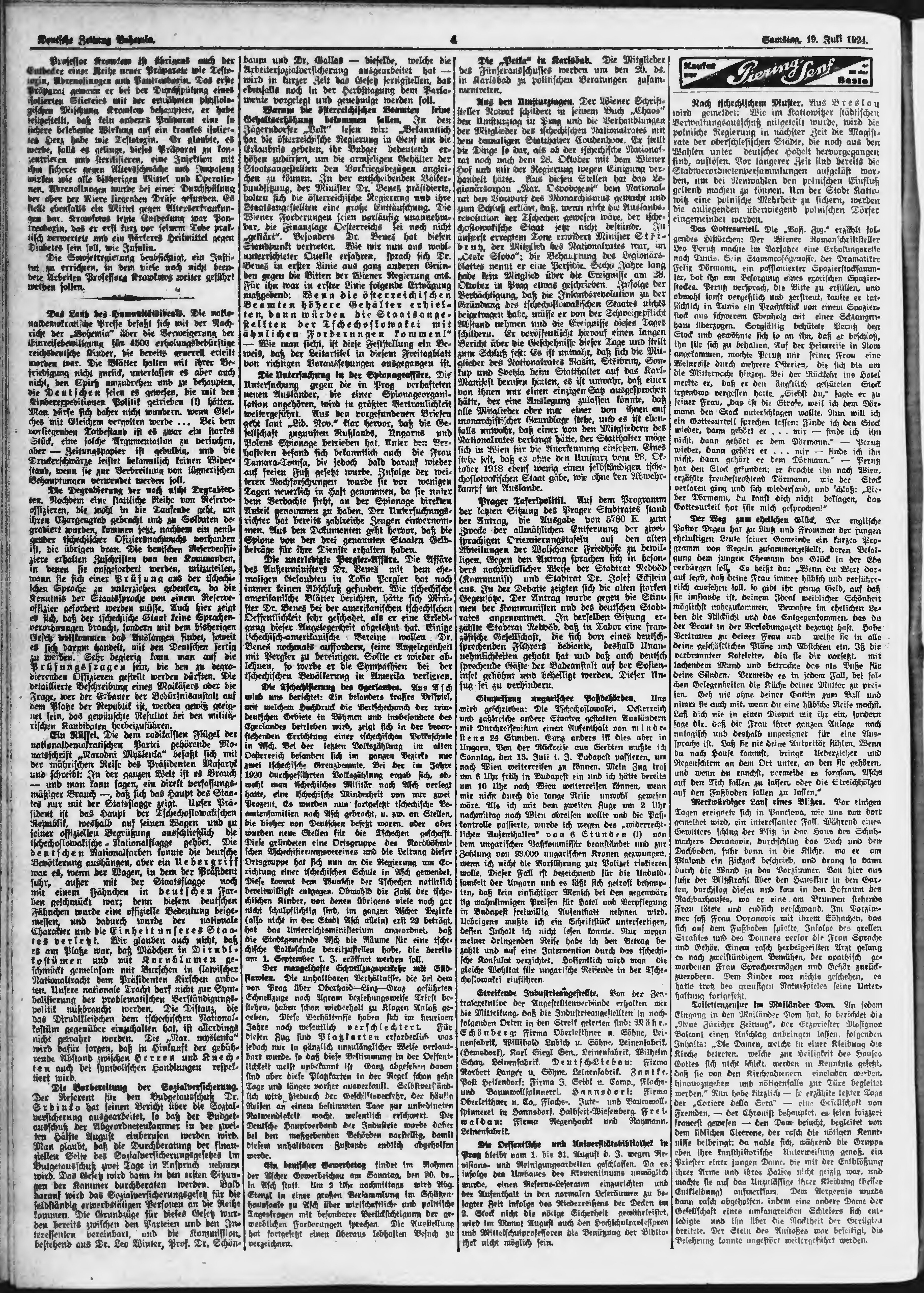 * Datum vydání výtisku: 19.7.1924 Číslo výtisku: 169 Poznámky k výtisku: ranní vydání;