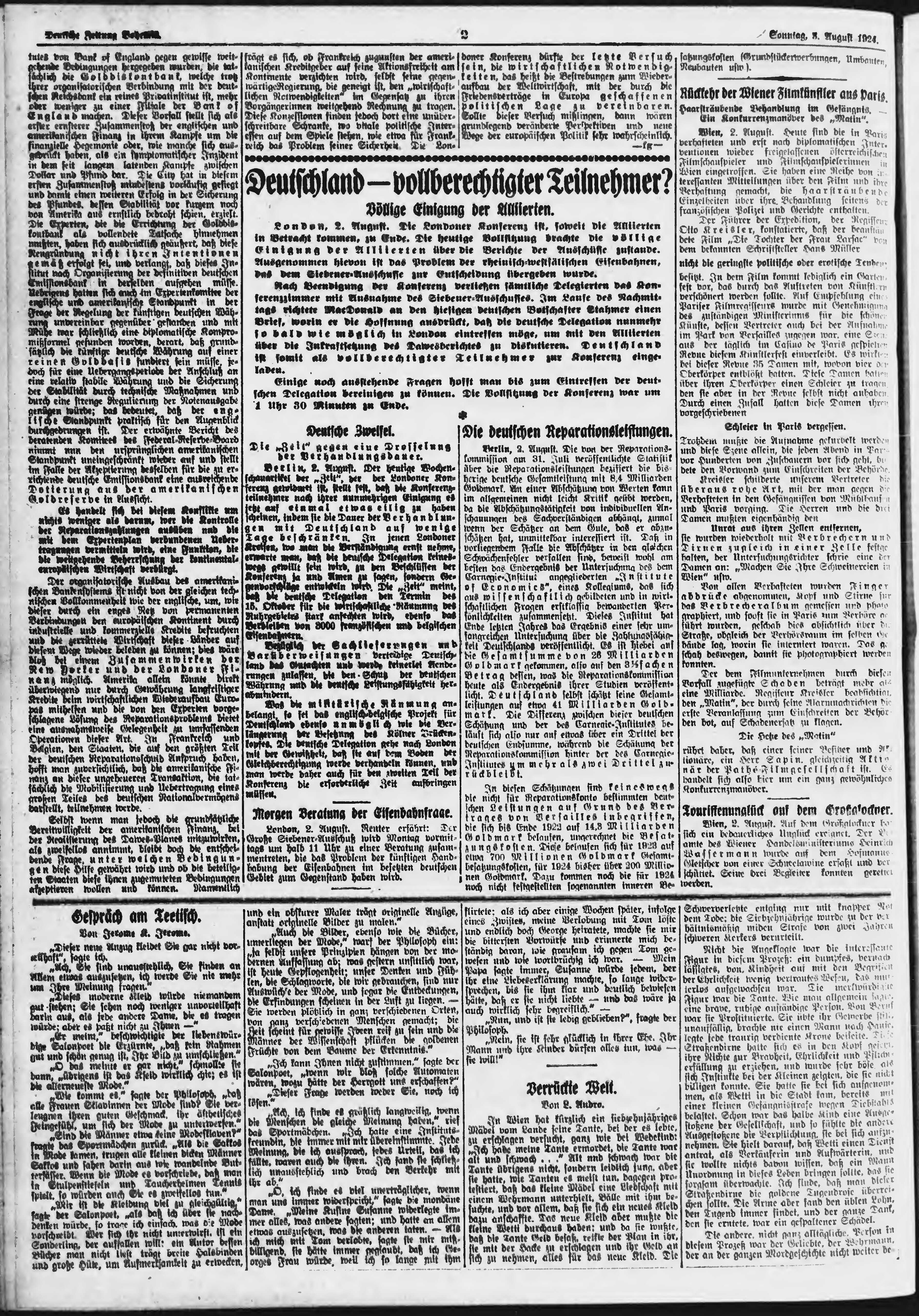 * Datum vydání výtisku: 3.8.1924 Číslo výtisku: 182 Poznámky k výtisku: ranní vydání;