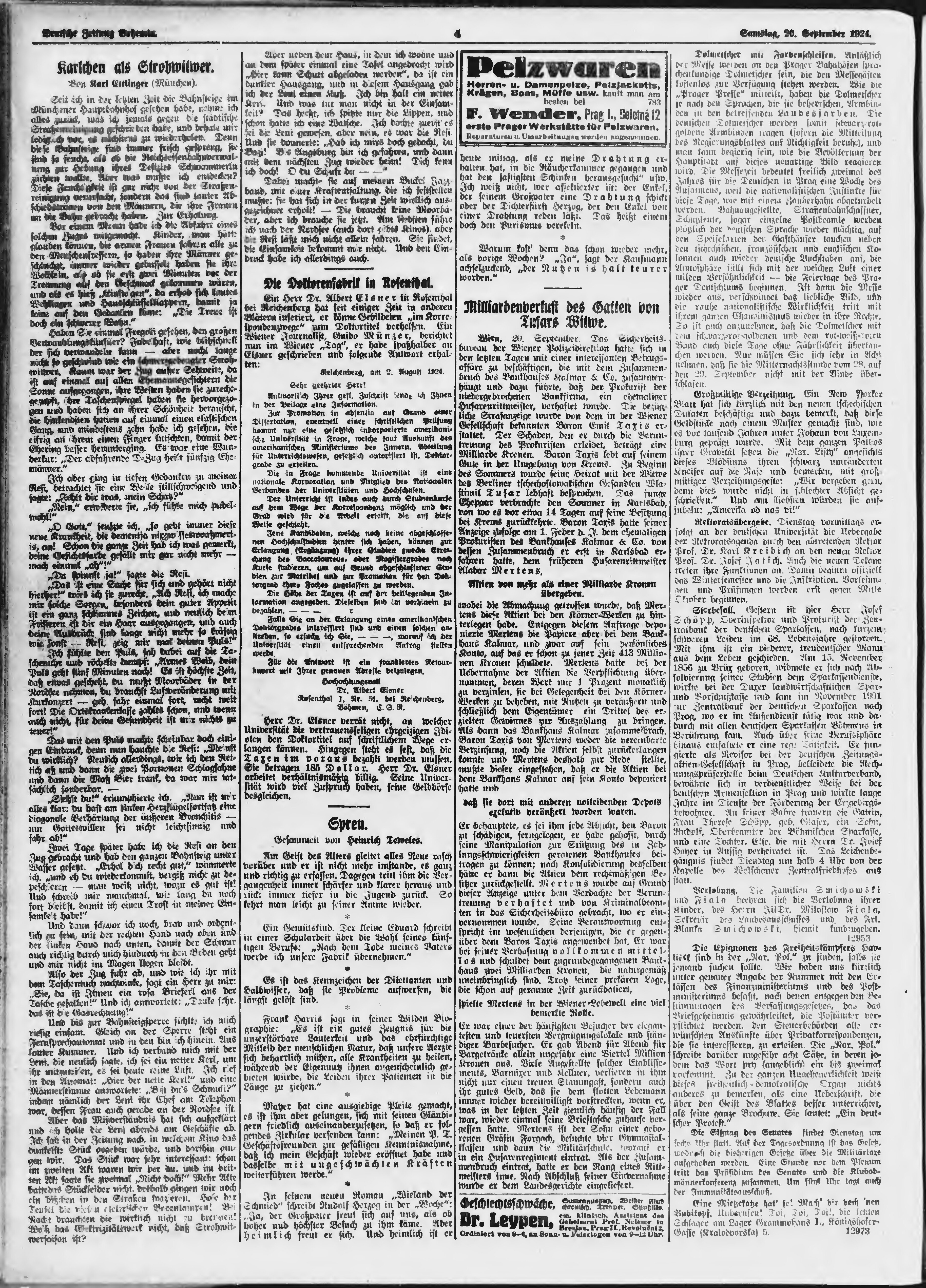 * Datum vydání výtisku: 21.9.1924 Číslo výtisku: 223 Poznámky k výtisku: ranní vydání;