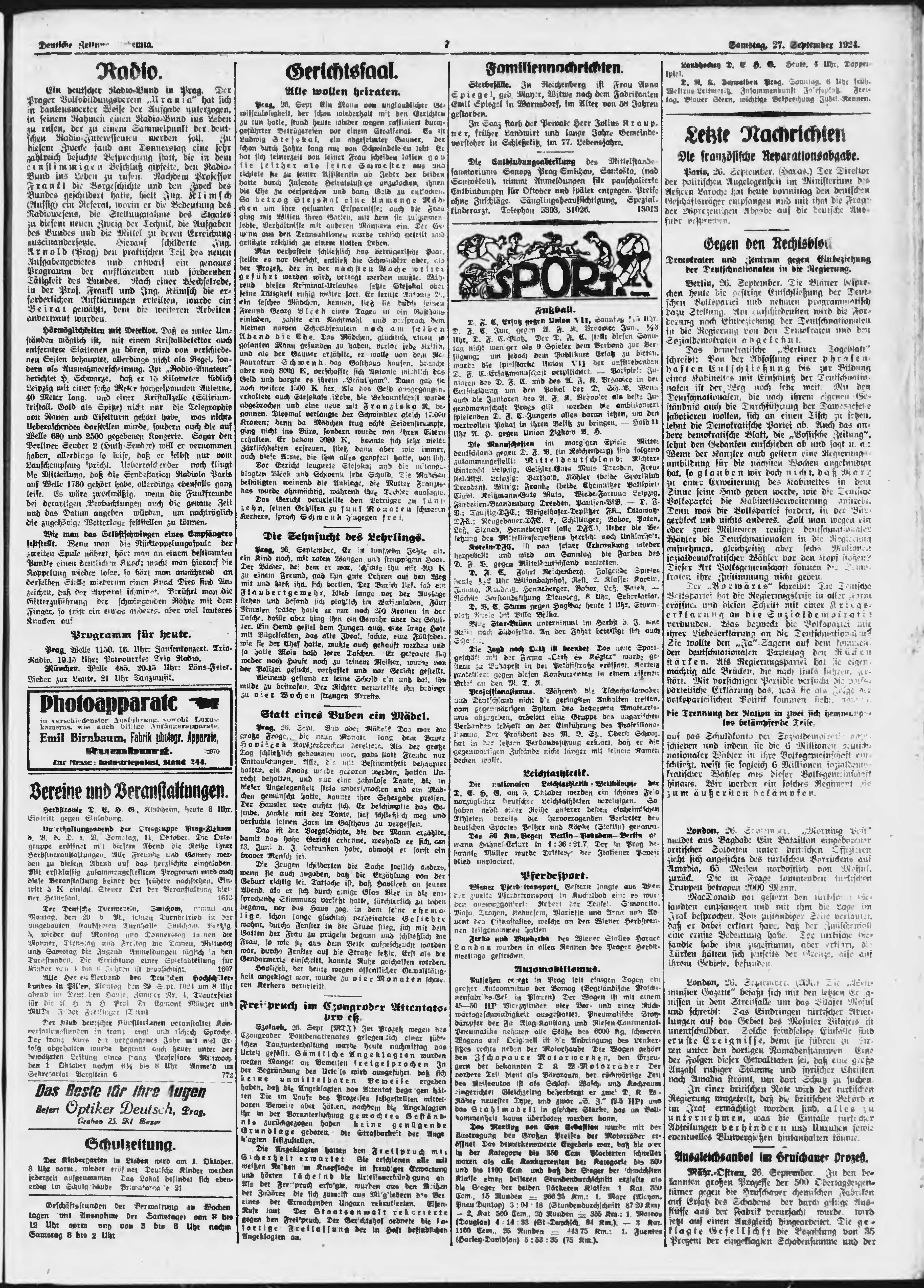 * Datum vydání výtisku: 27.9.1924 Číslo výtisku: 228 Poznámky k výtisku: ranní vydání;