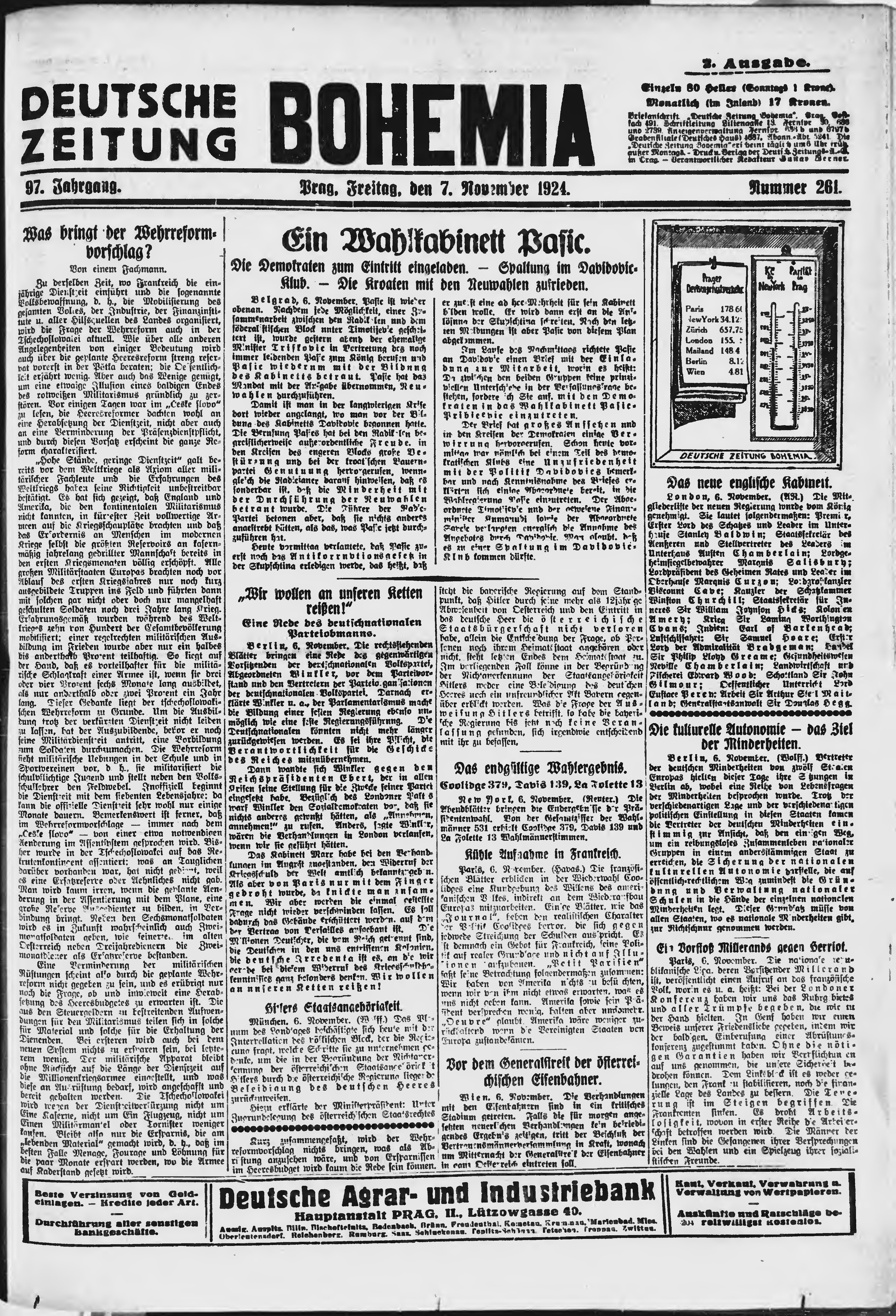 * Datum vydání výtisku: 7.11.1924 Číslo výtisku: 261 Poznámky k výtisku: ranní vydání;