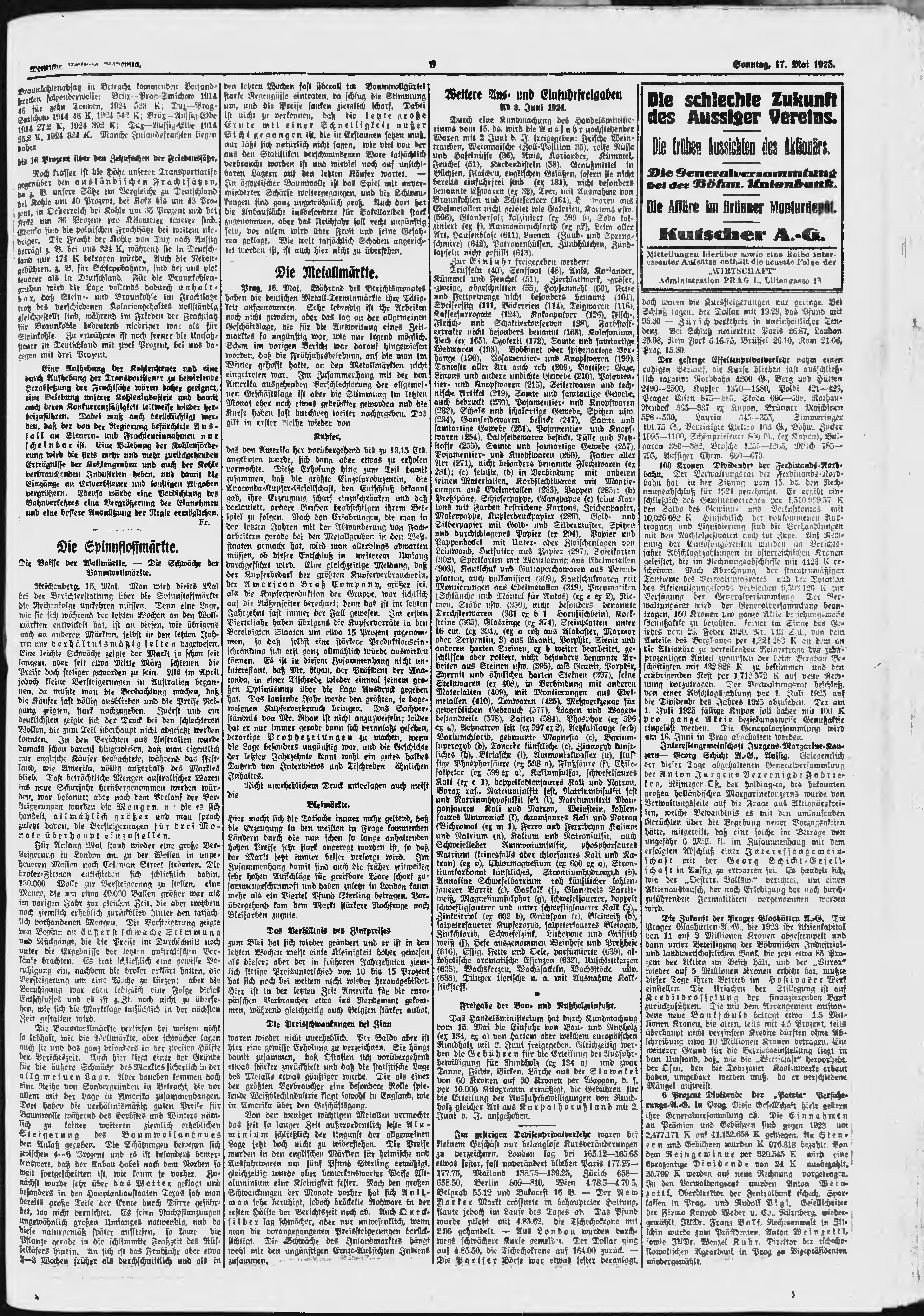 * Datum vydání výtisku: 17.5.1925 Číslo výtisku: 115 Poznámky k výtisku: ranní vydání;