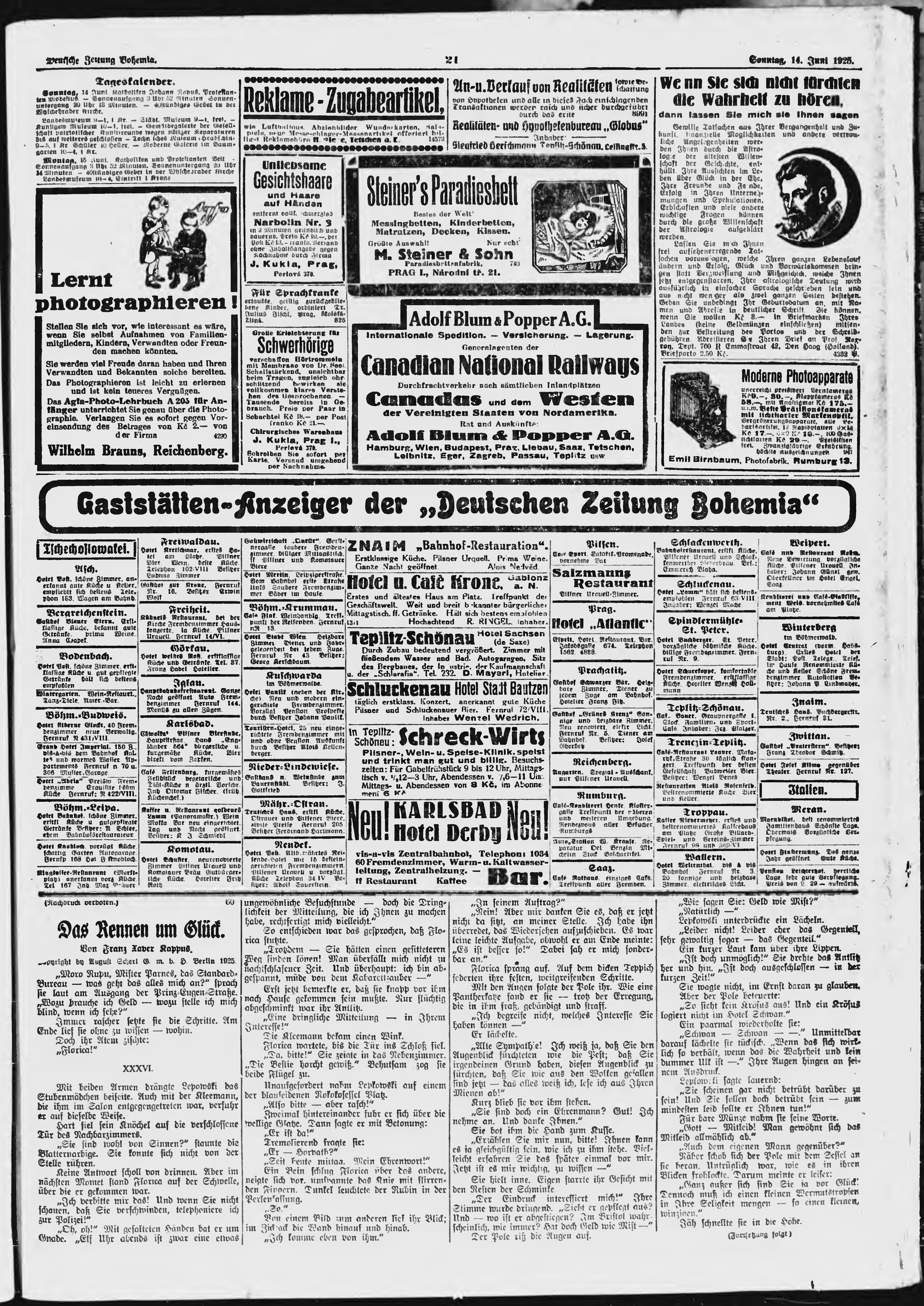 * Datum vydání výtisku: 14.6.1925 Číslo výtisku: 139 Poznámky k výtisku: ranní vydání;