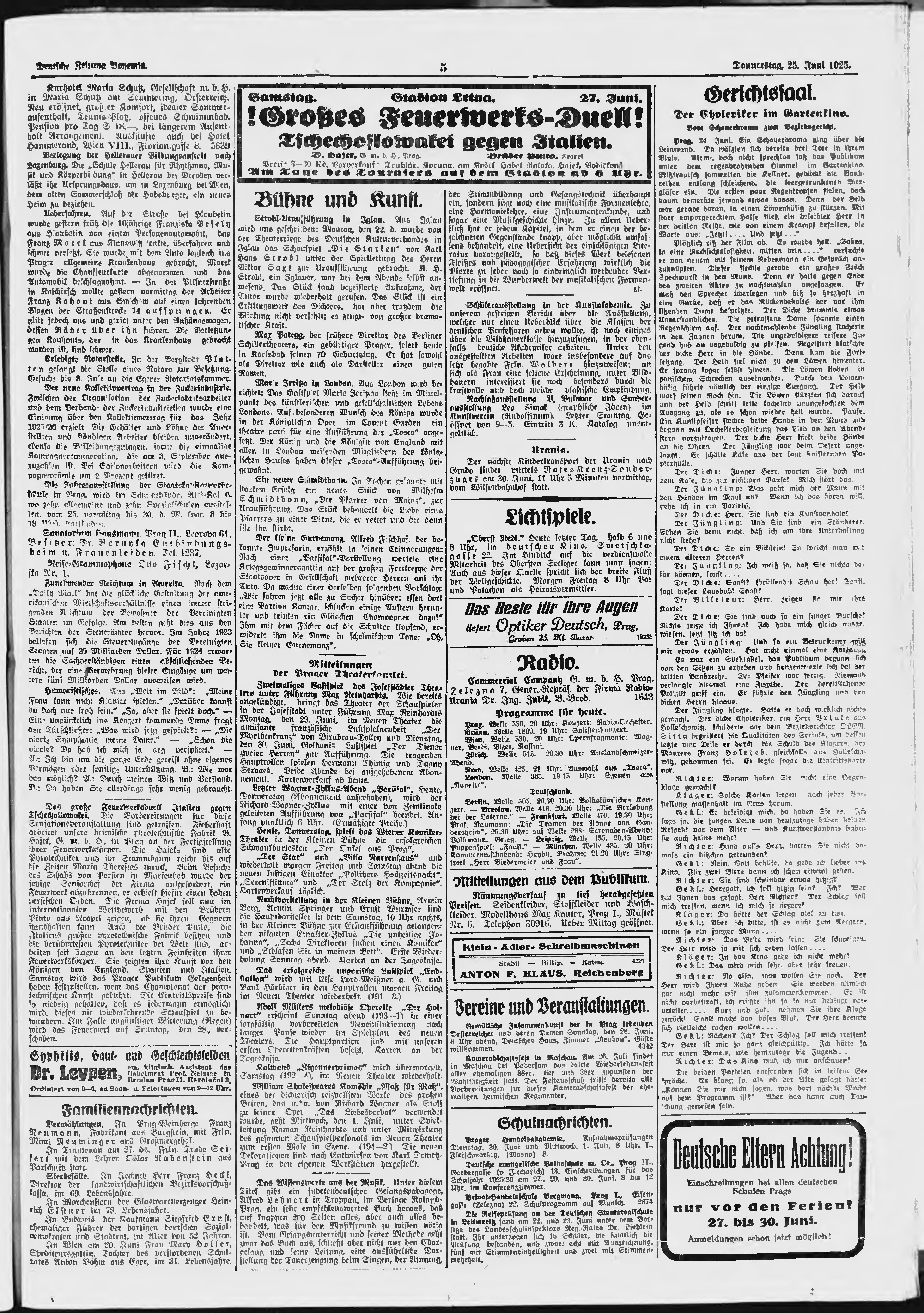 * Datum vydání výtisku: 25.6.1925 Číslo výtisku: 148 Poznámky k výtisku: ranní vydání;