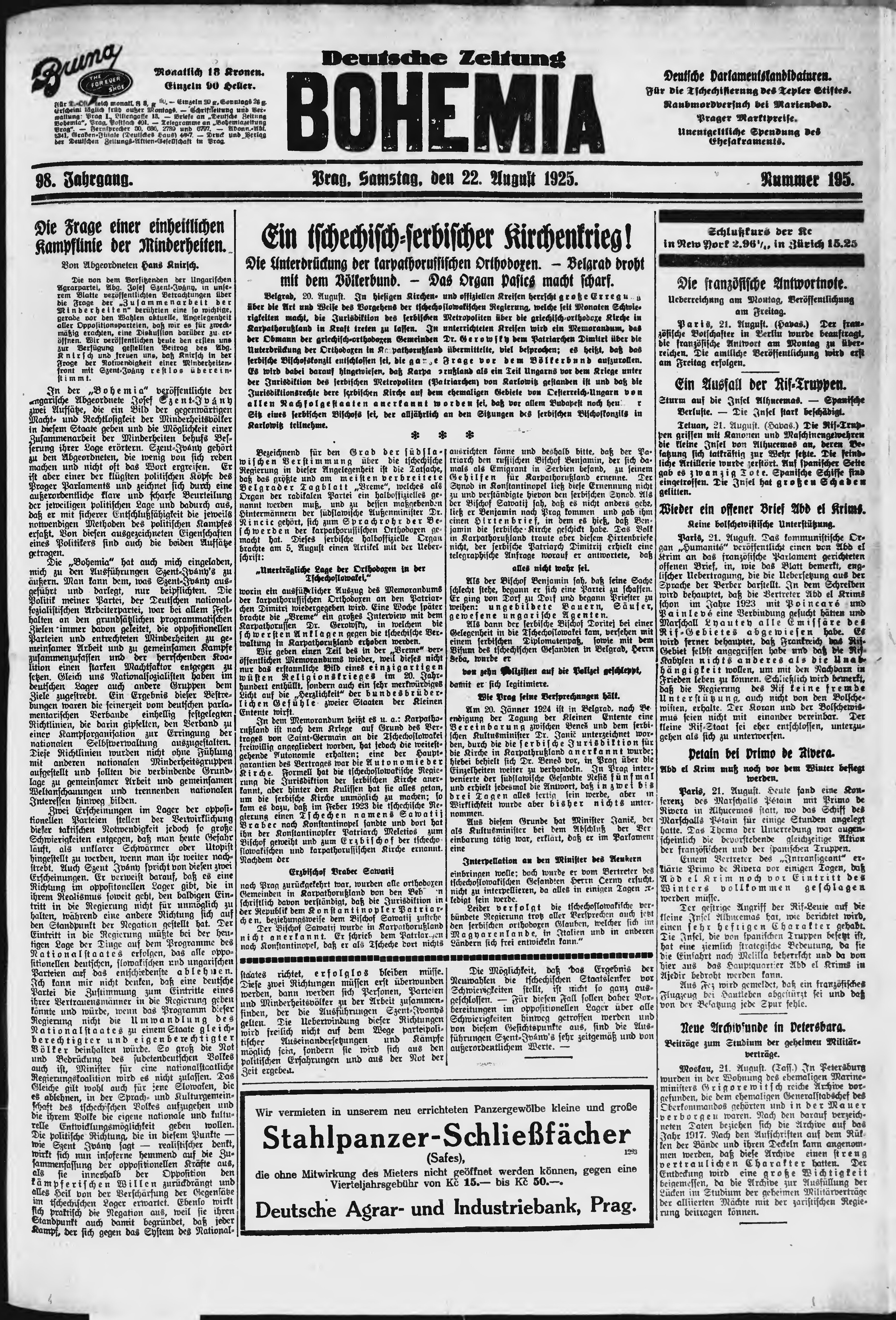 * Datum vydání výtisku: 22.8.1925 Číslo výtisku: 195 Poznámky k výtisku: ranní vydání;