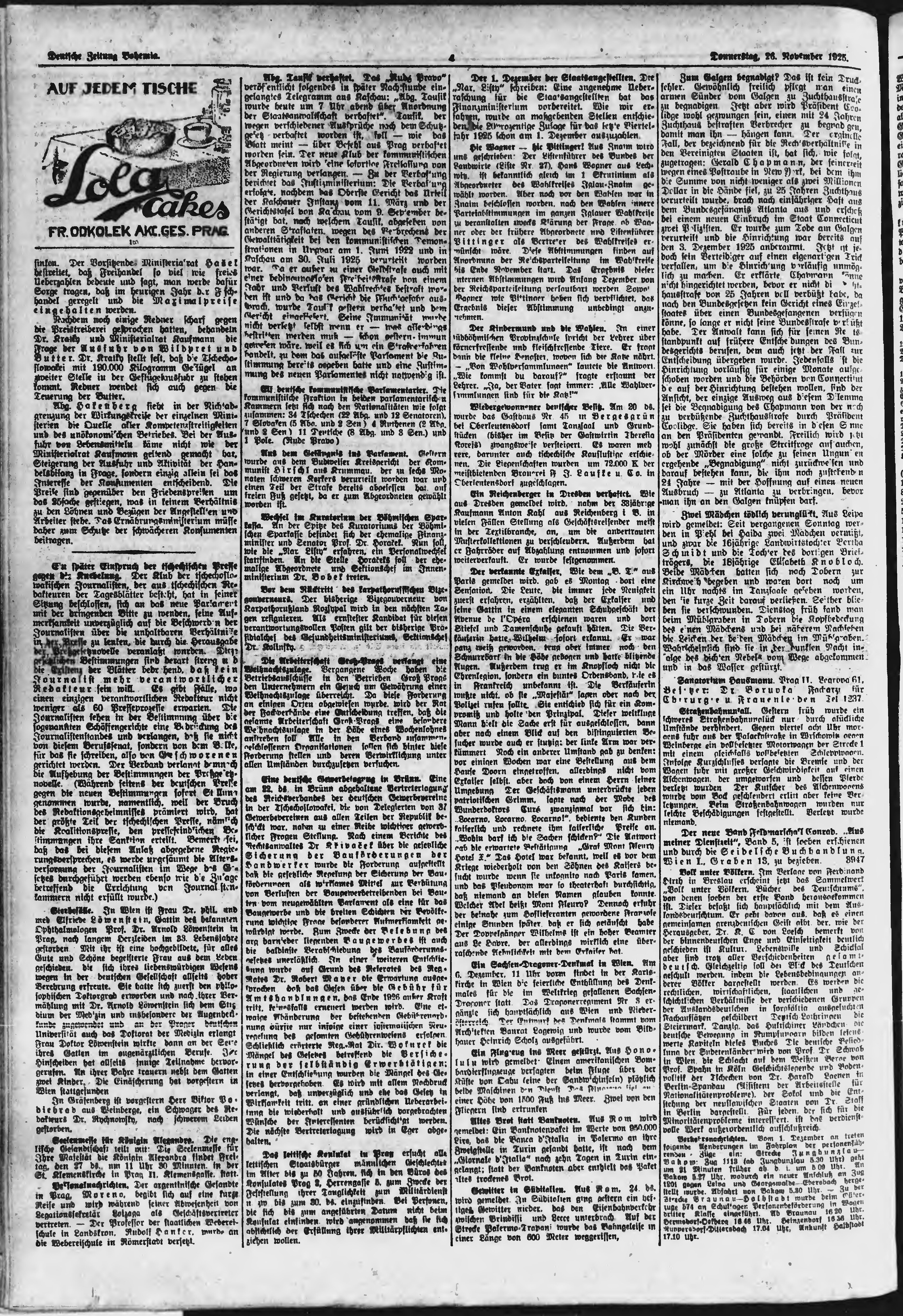 * Datum vydání výtisku: 26.11.1925 Číslo výtisku: 275 Poznámky k výtisku: ranní vydání;