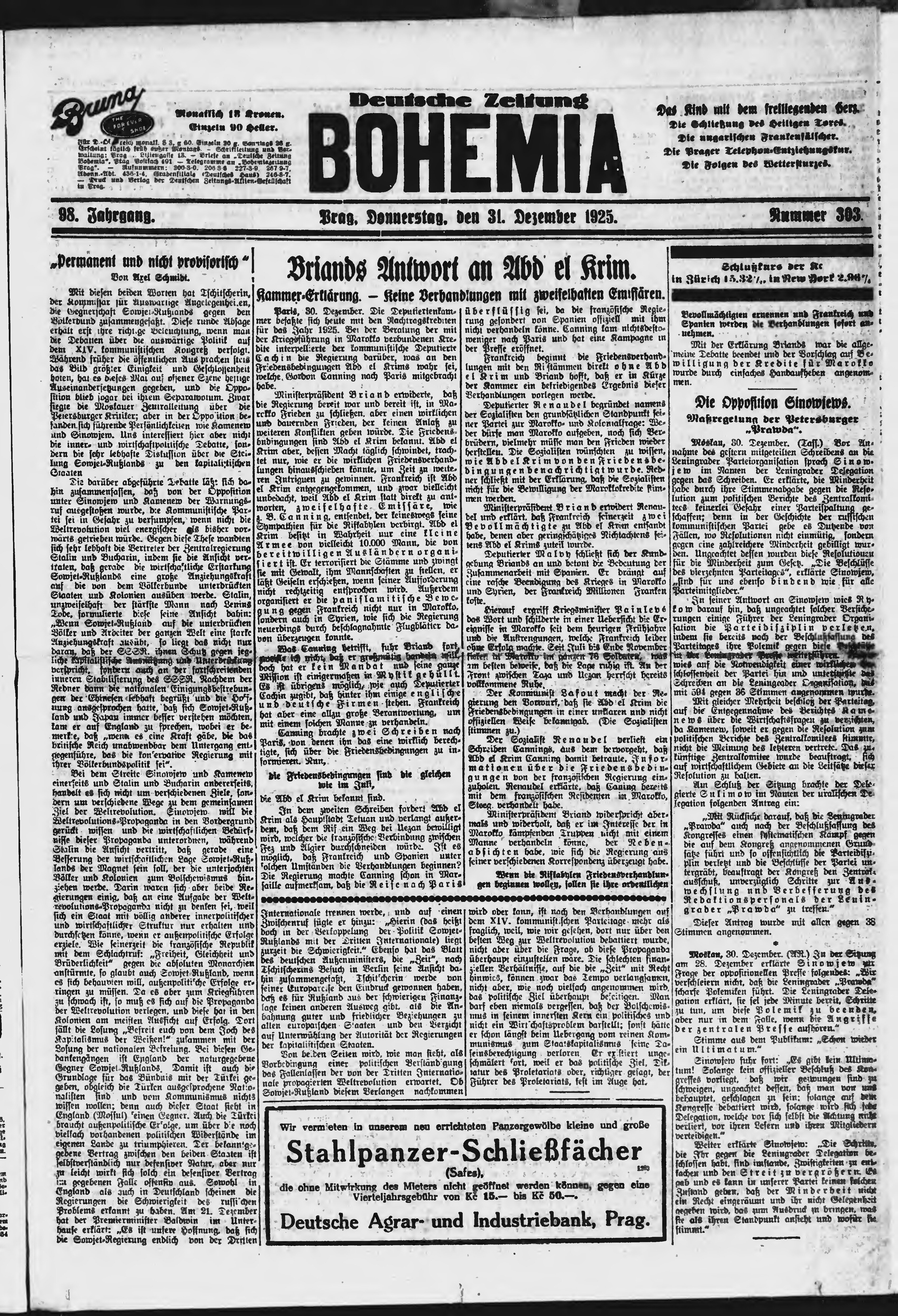 * Datum vydání výtisku: 31.12.1925 Číslo výtisku: 303 Poznámky k výtisku: ranní vydání;
